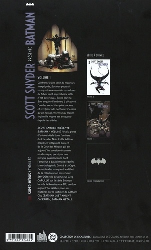 Confronté à une série de meurtres inexpliquée, Batman poursuit un mystérieux assassin aux allures de hibou dont la prochaine cible n'est autre que... Bruce Wayne. Son enquête l'amènera à découvrir l'un des secrets les plus anciens et terrifiants de Gotham City ainsi qu'un nouvel ennemi avec lequel la famille Wayne est en guerre depuis des siècles.