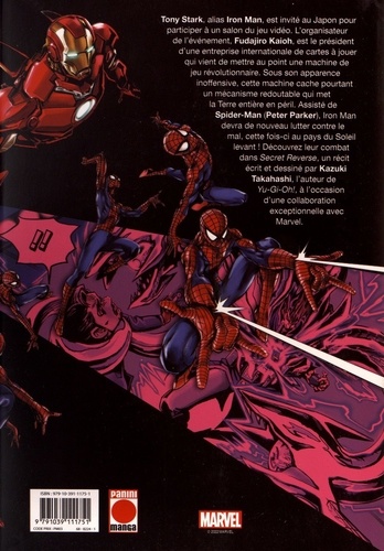 Iron Man et Spider-Man font équipe pour une mission hors du commun. Tandis qu'ils sont au Japon pour assister à un évènement gaming, ils rencontrent Reijiro Kaioh, le PDG d'une société de jeux de cartes à collectionner qui s'arrachent dans le monde entier. Il est venu présenter une nouvelle machine révolutionnaire. Mais il semblerait que ses intentions ne soient pas aussi bienveillantes qu'il veut le faire croire. Fini de jouer ! Nos deux super-héros gamers vont sortir leurs costumes ! Secret Reverse met à l'honneur un duo de choc : Iron-man et Spider-man, deux des plus grandes icônes Marvel. Sous la plume de Kazuki Takahashi, auteur de Yu-Gi Oh, ce one-shot signe une nouvelle collaboration entre la célèbre maison d'édition des super-héros et le Jump. Takahashi nous offre un récit qui plaira autant aux lecteurs de comics qu'à ceux qui ont grandi avec l'âme des cartes.