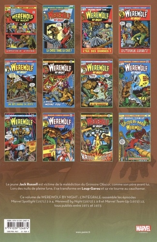 Le jeune Jack Russell est victime de la malédiction du Grimoire Obscur, comme son père avant lui. Lors des nuits de pleine lune. il se transforme en Loup-Garou et sa vie tourne au cauchemar. Ce volume de Werewolf by Night L'intégrale rassemble les épisodes Marvel Spotlight (1971) 2 à 4, Werewolf by Night (1972) 1 à 8 et Marvel Team-Up (1972)12, tous publiés entre 1971 et 1973.