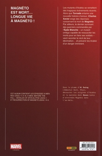 Suite aux machinations de Brand et de Sinistre, les mutants de Mars reprennent leur souffle mais un nouveau danger se profile à l'horizon avec le retour de Genesis ! Et c'est sans compter sur l'attaque d'Orchis et la chute de Krakoa ! Que restera-t-il d'Arakko à l'issue de l'ère House of X ? Suite et fin de la série X-Men Red, qui explore la vie des mutants habitant sur Mars, sous la houlette d'Al Ewing (Immortal Hulk, Immortal Thor). Toute la période House of X trouvera un point final avant la fin d'année dans la collection MARVEL DELUXE !