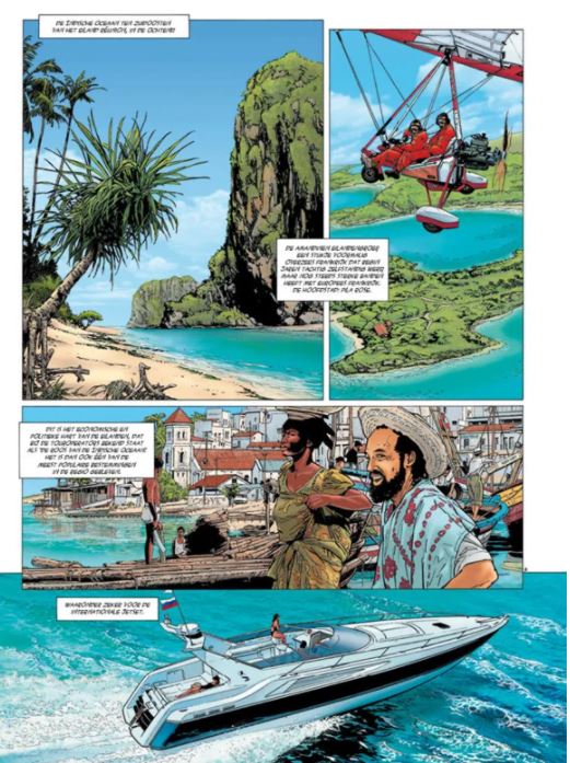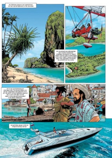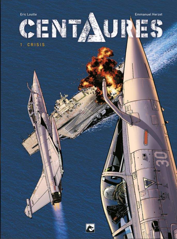 Score moyen 4 / 5Wanneer er zich een staatsgreep voordoet op de Amandinen, een eilandengroep vlakbij Réunion (onder Franse invloed, gesitueerd ten oosten van Afrika), ontkomen er 2 Franse gevechtspiloten in hun Jaguar gevechtsvliegtuig. Ze zijn daarbij getuige hoe iedereen koelbloedig wordt afgemaakt door huurlingen. Frankrijk grijpt meteen in (onder leiding van een knap getekende Sarkozy) en zendt het vliegdekschip Charles de Gaulle om de 2 piloten en de Franse onderdanen op het eiland op te pikken. Echter blijken de huurlingen heel goed georganiseerd en zwaar bewapend te zijn. Wat zijn de huurlingen van plan en wat zijn hun motieven om de Franse legermacht zo aan te vallen ? Als je de titel ‘Centaures’ leest, denk je niet meteen aan een strip die je naar hogere sferen brengt. Eric Loutte, die we kennen van onder andere de reeksen Alfa, Biggle en Team Rafale, slaagt hier wonderwel in. De passie straalt van de tekeningen waarbij alles prachtig gedetailleerd in beeld gebracht wordt: je zou zowaar verliefd worden op het lijnenspel van de Jaguar straalvliegtuigen, je waant je op een echt vliegdekschip tussen de bemanning, de knappe weergave van de artillerie,… Alles ziet er geloofwaardig uit waardoor je in het verhaal gezogen wordt. Het scenario opgebouwd door Emmanuel Herzet - auteur van onder andere de reeks Alfa en het onlangs verschenen Nottingham - weet te bekoren. Er zijn wel wat zijsprongen aanwezig , veel locaties en veel personages wat zorgt dat je bij de les moet blijven. Dit zal waarschijnlijk ook zijn nut bewijzen in het 2de deel, wat dit tot een compleet verhaal maakt. Er worden ook enkele interessante weetjes meegegeven, wat altijd leuk is. Zo passeert onze eigenste Frank de Winne (de ruimtevaarder) de revue, die vroeger nog testpiloot geweest is voor de F16. Kortom, Dark Dragon Books heeft hier een kleine topper te pakken met dit tweeluik !