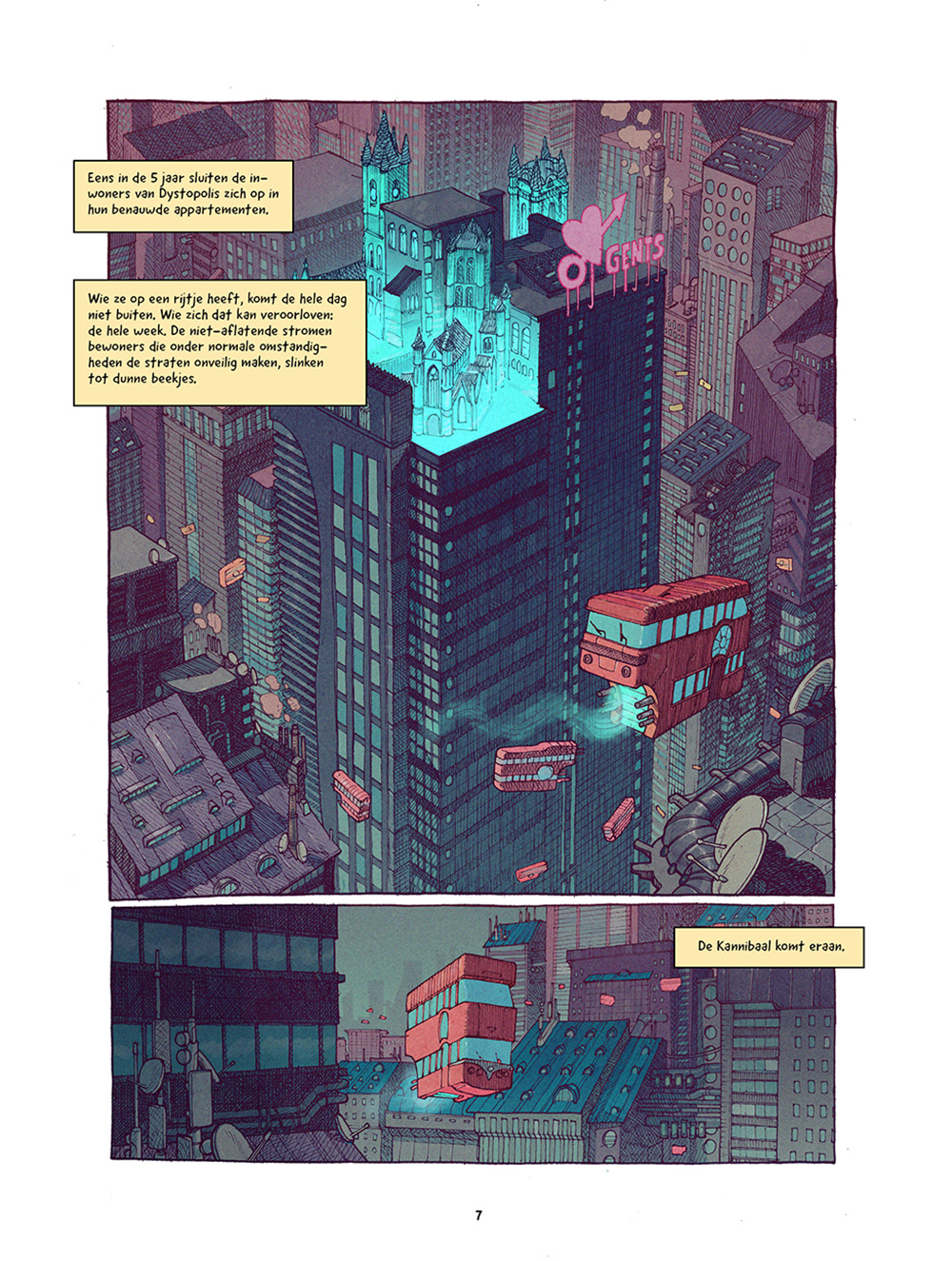 Dystopolis is een bizarre, vrolijke graphic novel met schitterend tekenwerk.