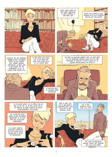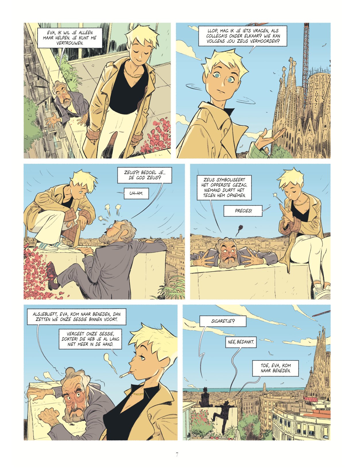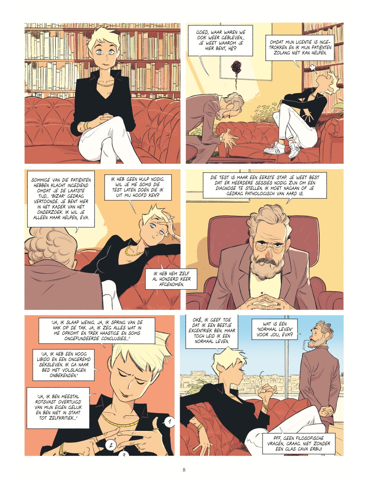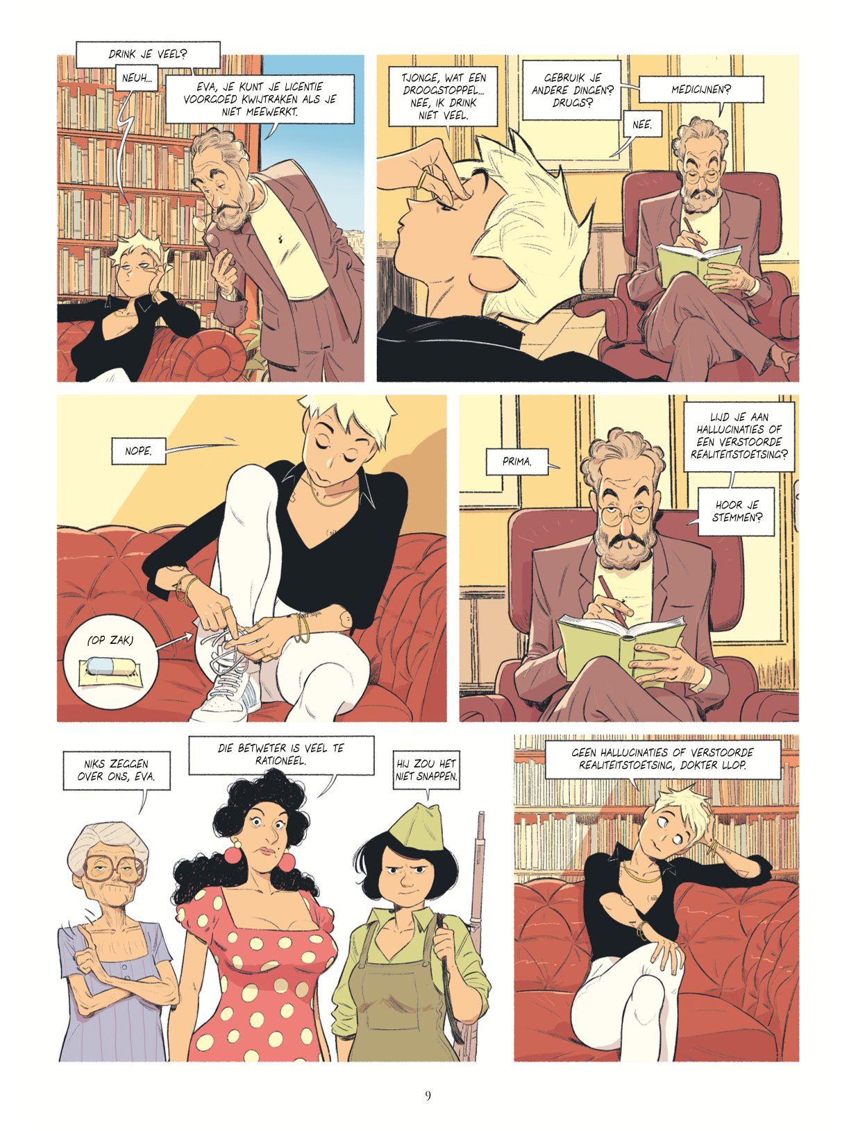Drie overleden (!) familieleden helpen Eva. Volgens psychiater Llop is dat geen voordeel. "De stemmen die ik hoor? Ach, die heb ik wel onder controle." Grootmoeder Mercè Monturos (102 j.) gaat haar testament voorlezen. Eva mag mee als vertrouwenspersoon van ex-patiënte Penelope. Maar wat spoken die Monturos uit in de haven? Om dat te weten is een telescoop nodig. Een zwendel met cavaflessen zorgt voor een spannend vervolg. Adjunct-inspecteur Alemany onderschat niemand en werkt desnoods vanuit een rommelhok. Eén zaak is duidelijk: na 'Ondanks Alles' heeft Jordi Lafebre (Lydie, La Mondaine, Mooie Zomers) geen scenarist meer nodig. In de sierlijke tekeningen is elk krulletje van belang.