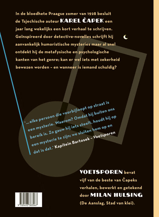 In Voetsporen worden we verplaatst naar Tsjechië in de jaren 20 van de vorige eeuw. In vijf verhalen van twintig pagina’s krijgen we een mix van detective, absurditeit en (licht) filosofische overpeinzing voorgeschoteld.