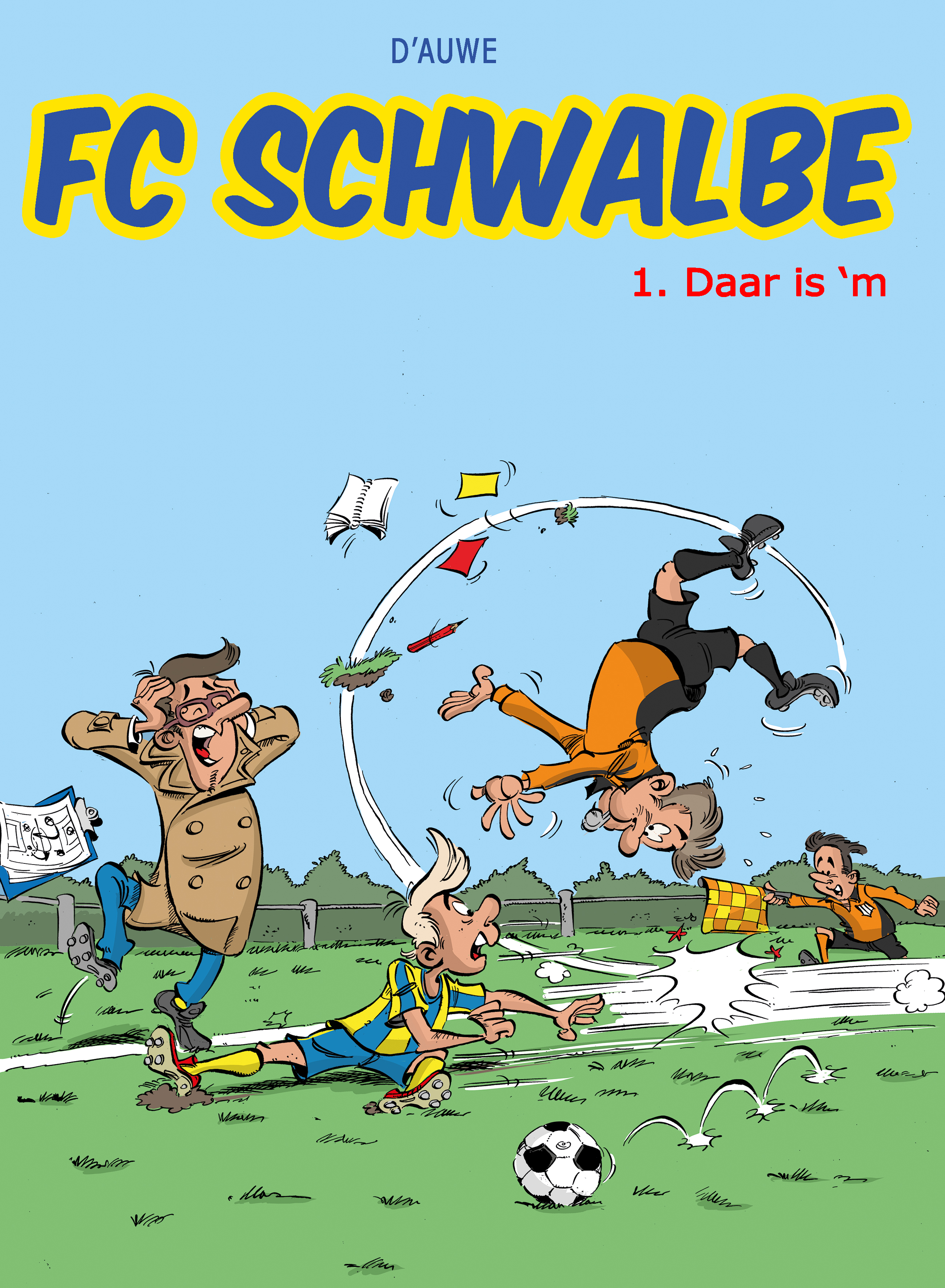 Een voetbalstrip van Dirk van der Auwera. En wat voor een! Heerlijke humor van de bovenste plank. D'Auwe tekende onder meer de succesvolle reeks humor in beroepen (van dokters, onderwijzers en chauffeurs tot ambtenaren, postbodes en politie) en Rooie Oortjes. Hou D'Auwe bij Strip2000 in de gaten want er gaat nog meer verschijnen.