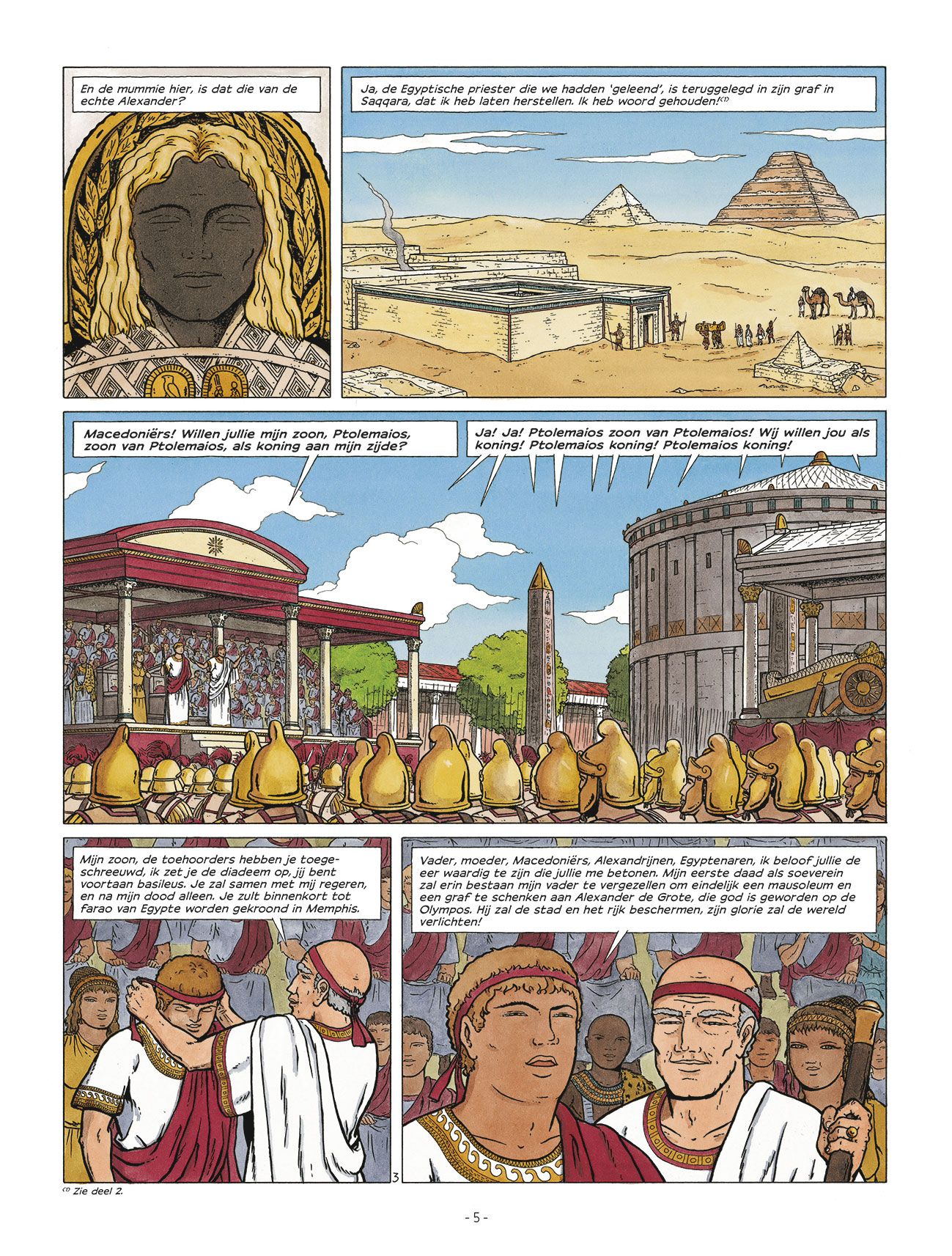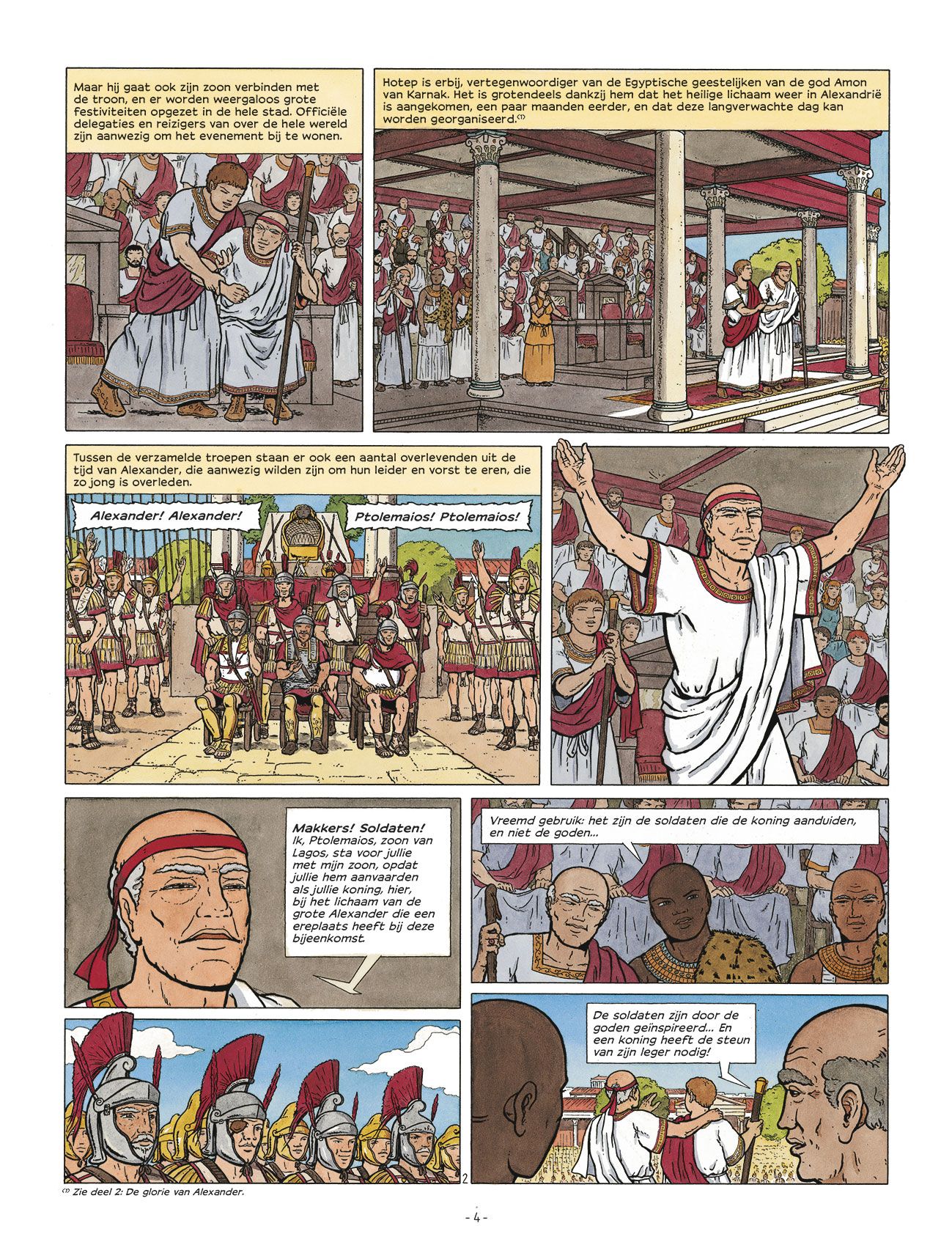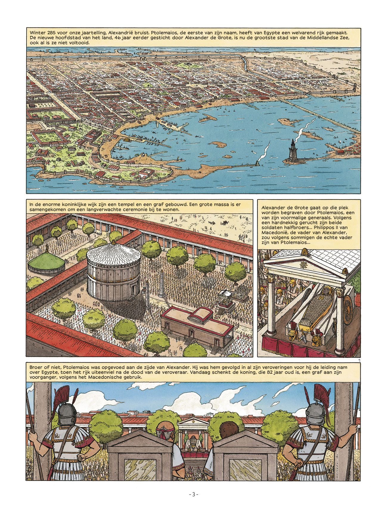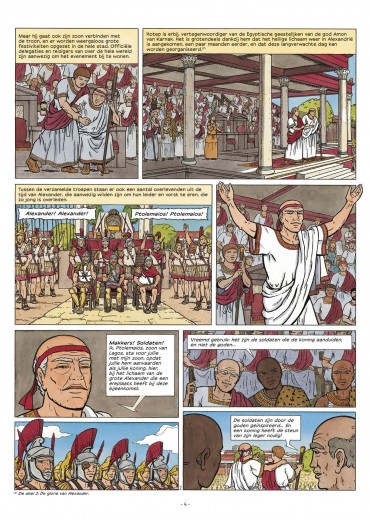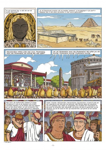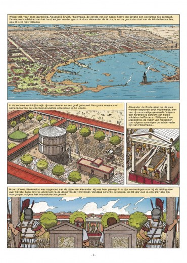 Rafaël Morales verdiende zijn sporen bij Jacques Martin als tekenaar van Alex en De Reizen van Alex . In 2007 startte hij zijn eigen historische reeks Hotep bij Glénat waarvan in 2009 het vervolg verscheen. Deze in het oude Egypte gesitueerde reeks kwam niet uit in vertaling. De reeks werd helaas stopgezet na twee delen, maar Glénat gunde Morales nog de voltooiing van het verhaal door in 2021 een integrale uit te brengen met de beide albums van Hotep en het slotdeel erbij. Het werd uitgegeven onder een nieuwe titel die Daedalus nu gebruikt voor de vertaling: De Farao's van Alexandrië. Daedalus geeft het eveneens uit als een integrale in hardcover in bepekte oplage, maar ook als drie delen in softcover waarvan deel 1 tegelijk met de integrale uitkomt. Het softcoveralbum van deel 2 staat in maart 2023 gepland en deel 3 in juni 2023. Voor dat laatste album zal Morales nog een cover moeten tekenen, want die bestaat momenteel niet. laatste deel in dit drieluik over de avonturen van Hotep in het oude Egypte Schitterend hoe Rafael Morales met zijn klassieke, elegante stijl het eeuwige Egypte tot leven brengt De glorie van de Egyptische farao hangt samen met die van Alexander de Gro te, dus wanneer diens lichaam verdwijnt, laten de gevolgen zich raden... 287 v.C. In Thebe loopt de zomer op zijn einde, de overstroming van de Nijl is bijna voorbij en Hotep begeleidt zijn vader naar diens laatste rustplaats. Na heel wat tegenslagen kan de grote profeet van Amon zich eindelijk wijden aan zijn taak: de cultus van de god verzorgen en Karnak herstellen, dat erg te lijden heeft gehad door het weer en vijandige invallen. Maar een moord stuurt alles in de war. In Memphis en in Alexandrië, de nieuw e hoofdstad, wordt een complot beraamd. Het sleurt Hotep en Egypte, geleid door de erfgenamen van Alexander de Grote, mee naar nieuwe gevaren..