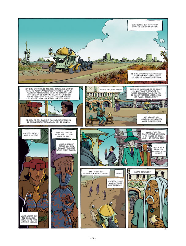 Voor de eerste keer in de geschiedenis van de mensheid is op aarde een boodschap ontvangen van een andere planeet! 212 jaar later komt het ruimteschip Explorer IV aan in een baan om deze planeet ... en wordt bijna onmiddellijk vernietigd met een ruimteafweerraket. De enige overlevende van de ramp is Adam Reith, die met zijn dropship neerstort in de jungle van Zuid-Kotan. De voormalige militair zal het van zijn buitengewone aanpassingsvermogen moeten hebben om te overleven op deze bizarre en meedogenloos wilde wereld, die door zijn bewoners 'Tschai' wordt genoemd. Tschai - de waanzinnige planeet is een van de bekendste werken van de Amerikaanse SF-auteur Jack Vance. De cyclus bestaat uit vier romans: 1. Een stad vol Chasch 2. Onder de Wankh 3. De Dirdir 4. De Pnume De stripbewerking van dit epische verhaal beslaat acht albums. Scénarist Morvan (Ik ben dood (Glenat), Konvooi (Arboris), Nävis (Talent), Robbedoes en Kwabbernoot (Dupuis), Troll (Talent)) adapteerde het bekende SF-boek van Jack Vance (die in de jaren '70 waanzinnige verkoopscijfers haalde in Nederland) voor tekenaar Li-An. Dit laatse, onbeschreven blad geeft de wereld van Tschai 23 jaar na het boek eindelijk een gezicht.