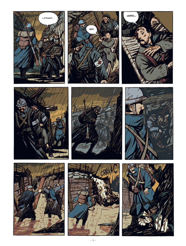 Wanneer er in de waanzin van de loopgraven een slachtoffer valt door een bajonet van eigen partij, wordt één man, majoor Sauveur, op onderzoek gestuurd. Temidden van de vallende bommen en rottende lijken voert hij een eigen oorlog: die van gerechtigheid! Scenaristen Adam en Cady voeren ons terug naar '14-'18, met een originele kijk op de loopgraven. De tegenstander lijkt niet zozeer de troepenmacht in de Loopgracht aan de andere kant, maar de mannen die naast je staan, in de eigen loopgraven. Met een sublieme cadrage weet tekenaar Marchetti dit verhaal te brengen als een film.