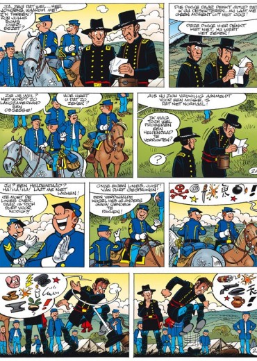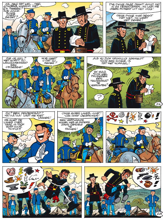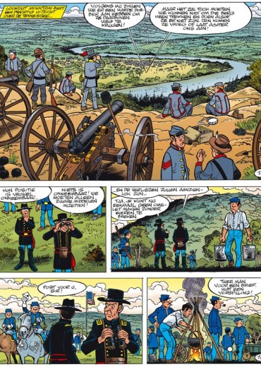De Zuidelijken hebben een kamp op Lookout Mountain en in de vallei beneden zoeken de Noordelijken naar een manier om de vijand daar te verdrijven. Blutch en Chesterfield, die met een brief aankomen voor kapitein Hooker, moeten het ontgelden. De kapitein is razend en koelt zijn woede op onze vrienden. Hij laat hun niet uit het kamp vertrekken, maar geeft het duo de opdracht op verkenning te gaan naar het zuidelijke kamp. Je reinste zelfmoord, want eerst moeten Blutch en Chesterfield ongedekt een rivier over en de vijand staat op de andere oever enkel te wachten tot ze dicht genoeg zijn genaderd om ze als konijnen neer te schieten. Als een tijdje later over de hele streek een dichte mist hangt, is dat voor kapitein Hooker het signaal om de Zuidelijken te verrassen. Maar dat is buiten zijn eigen jongens gerekend die verdwalen en ... op elkaar beginnen te schieten.