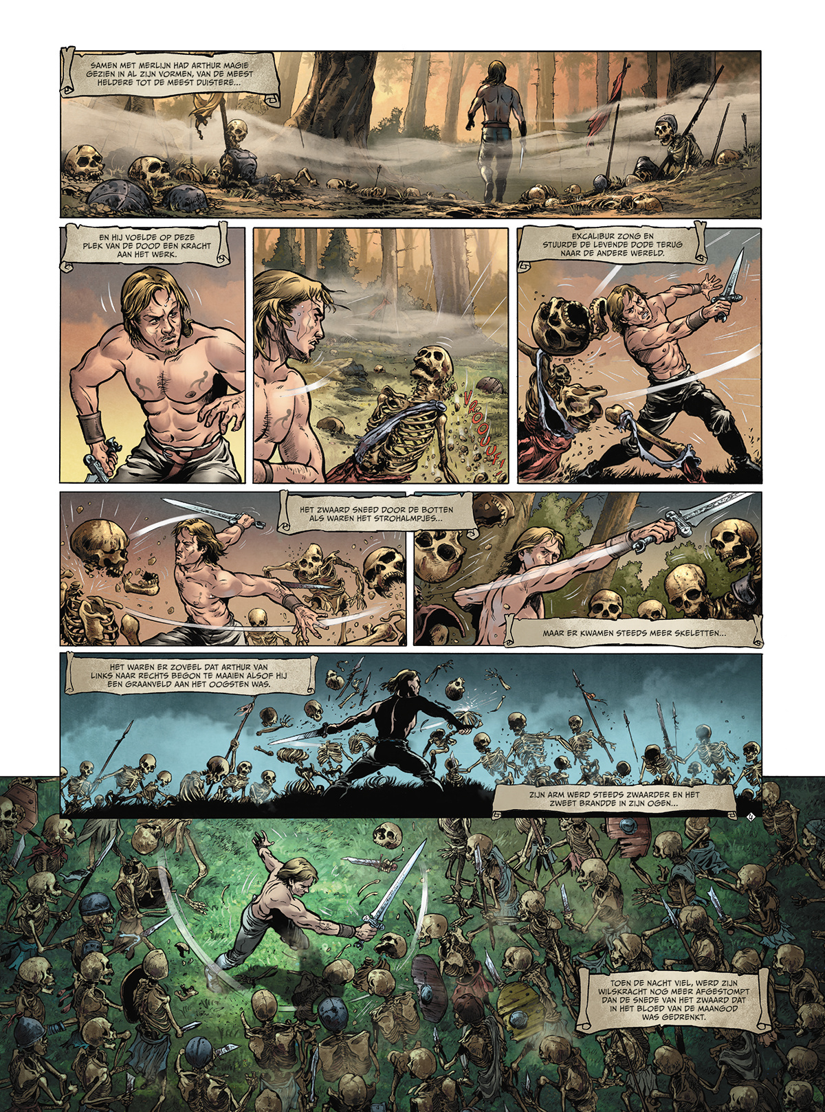 Het vervolg van de saga van Lambert en Istin! met A3 kunstdruk voor de eerste aankopers Striptekenaar Eric Lambert kennen we van volgende stripreeksen of delen hiervan waar hij aan meewerkte De Laatste Kathaar Flor de Luna Viravolta Reiziger Stripscenarist Istin Jean-Luc schreef onder andere volgende stripreeksen of delen hiervan conquest Aleph Alice Matheson Androiden Aquilon Asceltis De Drakenorde De Druiden De Kathedraal van de afgrond De Legenden van Korrigan De Meester Inquisiteurs Drakenbloed Elfen Excalibur Hannibal Meriadec Het Vijfde Evangelie Lancelot Magiers Merlijn de profeet Night of the living dead Orks & Goblins Tempelridder Ys De confrontatie tussenkoning Arthur en de geduchte Ahes... Zal de toekomstige koning erin slagen over een Brittannië te heersen dat verlost is van zijn eeuwenoude conflicten? Het wordt tijd dat Arthur uit de schaduw van Merlijn komt om de vorst te worden waar Brittannië al zo lang op wacht... Maar terwijl hij het land en zijn talloze clans tracht te verenigen, weeft Ahes, die in Morgane's buik een vergiftigd geschenk liet, opnieuw haar web in het noorden. In Letavia voegt Bedwir zich bij Lancelot in de oorlog tegen Claudas, de moordenaar van zijn ouders... Lees ook de vervolgverhalen Queeste naar het zwaard en Merlijn de profeet.