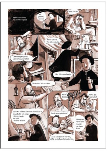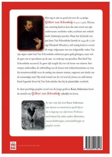 Het fascinerende verhaal van een van de belangrijkste figuren uit de zestiende eeuw ..... Historisch Antwerpen zoals u het nooit eerder zag ..... Met achtergronddossier ..... Jubileumjaar met tal van events en vieringen ..... Het zag er niet zo goed uit voor de 24-jarige Gilbert Van Schoonbeke (1519-1556). Hij was onwettig kind en kon dus niet erven van zijn intussen overleden vader, die nochtans een welstellende Antwerpse poorter was. Maar het tij keerde een jaar later. Van Schoonbeke huwde in 1544 de 17-jarige Elisabeth Hendricx, wél wettig kind en vooral de enige erfgenaam van een schatrijke vader. Van zijn eigen vader had Van Schoonbeke weliswaar geen geld gekregen, maar wel de gave om te speculeren op de aan- en verkoop van gronden. Dat deed Van Schoonbeke succesvol. In geen tijd zorgde hij voor de bouw van nieuwe Antwerpse stadswallen, de uitbreiding van de haven met industrieterreinen en was hij verantwoordelijk voor de aanleg van nieuwe straten, goed voor ongeveer een derde van de toenmalige stad. Hij werd vriend van de rich and famous en zelfs keizer Karel logeerde liever bij Van Schoonbeke dan bij de plaatselijke overheid. In deze prachtige graphic novel van de jonge graficus Koen Aelterman komt de wereld van Gilbert Van Schoonbeke rijkelijk tot leven. ..... In zijn vrije tijd staat Koen Aelterman graag op de planken: hij doet aan musical en theater en speelt mee in de rockgroep van zijn broer. Professioneel tekent hij onder andere illustraties, muurschilderingen, animatiefilmpjes en beeldromans.