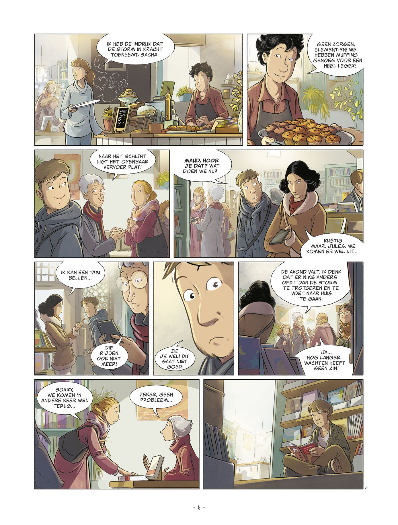 'Valavond, hartje winter... Parijs wordt geteisterd door sneeuw en ijs. De bezoekers van Clementiens boekhandel — onder wie Naori en Guillaume, die net zijn verhuisd naar de hoofdstad, en Chantal, de schrijfster — raken niet meer thuis. Deze noodgedwongen stilstand is voor elk van hen een uitgelezen kans om herinneringen op te halen aan hun kindertijd, de last van wat hun ouders hun hebben nagelaten, aan hun opvoeding, aan de invloed van ouders en familie op hun leven en keuzes... En dan gaat de storm liggen en maakt de nacht plaats voor een nieuwe dag… en misschien een nieuwe manier om het leven te bekijken en te leiden.'
