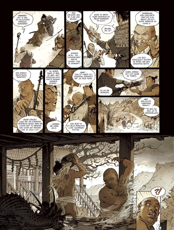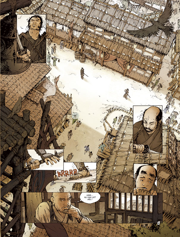 Zullen Takeo en de zijnen uit de greep kunnen blijven van de 'schimmen’ die hen achtervolgen? De klopjacht is spannend ... Takeo hoopt te ontdekken wie hij is. Waarom is hij opgegroeid in een klooster? Waarom heeft z’n broer hem verlaten? Zijn queeste dompelt hem onder in een enorm avontuur dat hem confronteert met de sombere toekomst van het keizerrijk en de 13de profetie ... Scénarist Di Giorgo, die onder andere Shane schreef, dompelt de lezer onder in de mysterieuze Japanse krijgskunst, waarin realiteit en fantasy hand in hand gaan. Tekenaar Genêt brengt het verhaal met gedetailleerde pennestreken tot leven.