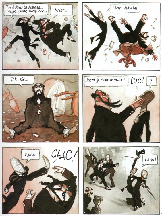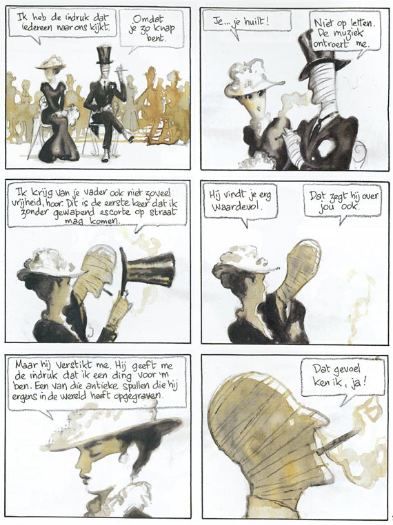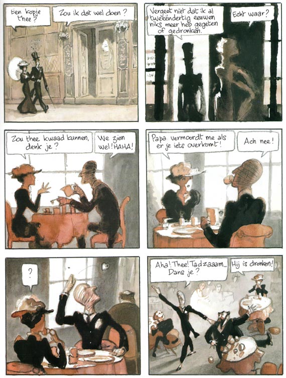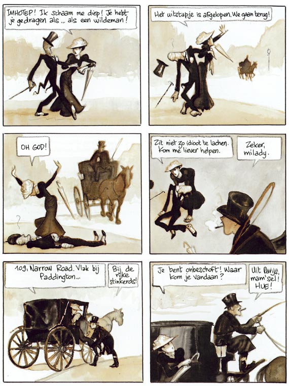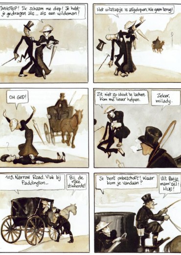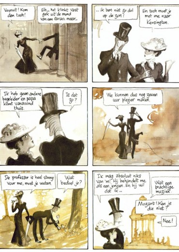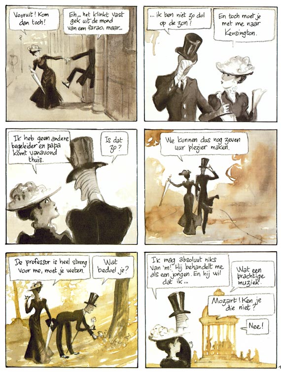 Dit poëtische, originele, romantische en waanzinnig grappige album is van de hand van twee jonge auteurs: Joann Sfar en Emmanuel Guibert. Een vleugje Earl Grey, wat slordig aangebrachte windsels, en we zitten midden in het meest fantastische liefdesverhaal dat ooit in stripvorm is verschenen. Zoals de feuilletonschrijvers uit het begin van vorige eeuw, laat Joann Sfar zijn personages de meest adembenemende dingen meemaken. Emmanuel Guibert toont zijn onmiskenbare talent als aquarellist. Van Scotland Yard tot Buckingham Palace neemt hij de lezer mee naar het Engeland van Conan Doyle, koningin Victoria en Jack the Ripper. Het warme hout van de lambriseringen, het zachte gezeefde licht, een glimlach... niets ontbreekt aan deze liefdesgeschiedenis. Pure balsem voor het hart!