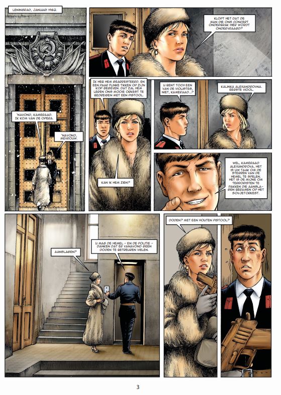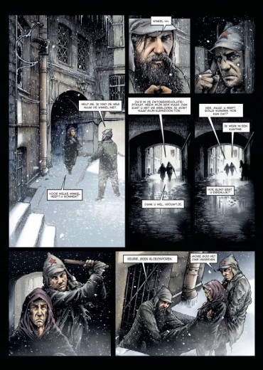 ‘De muizen van Leningrad’, dat zijn Maxim, zoon van een rijke vader; Pyotr, kind van intellectuelen die naar de goelag zijn gestuurd; Grigori, zoon van een piloot die door de regering is geëxecuteerd; en Anka, dochter van een violist. Het is putje winter, 1941. In ruil voor voedsel doet Anka alsof ze van Maxim houdt. Ze geeft haar eigen rantsoenbonnen aan Pyotr, die op de vlucht is voor het gerecht. Grygori kan maar niet begrijpen dat zijn moeder houdt van Konstantin, de vader van Maxim, die hun ook voedsel geeft. De vrienden besluiten de stad te ontvluchten in een vrachtwagenkolonne die zich waagt aan een overtocht van 70 km over een bevroren meer… terwijl de Duitse artillerie op hen schiet. Maar onze vier vrienden hebben maar drie biljetten voor de oversteek… Scenarist Jean-Claude Van Rijckegem is een gevierd romanschrijver en scenarist-producent van films en televisiereeksen (Aanrijding in Moscou, Amigo's, ...). Kiekeboes-medewerker Thomas Du Caju haalt voelbaar zijn hart op: grandioze actiescènes en oogstrelende meiden.