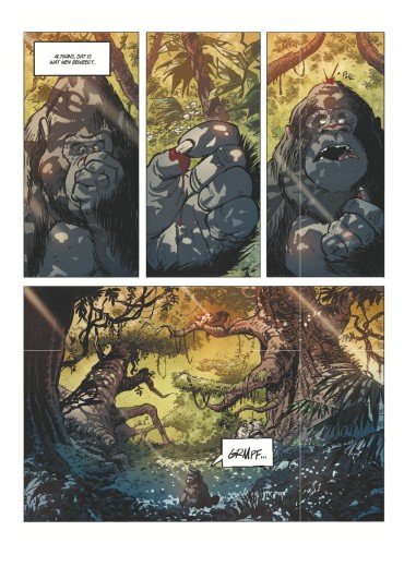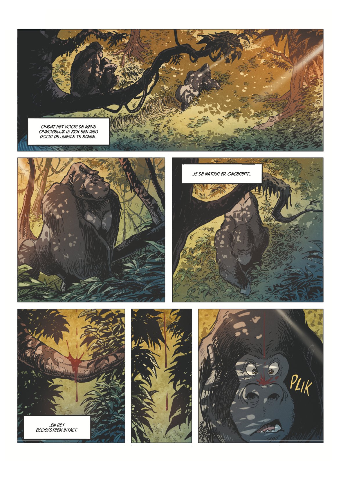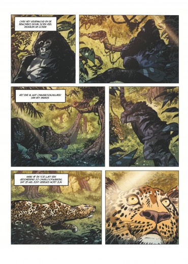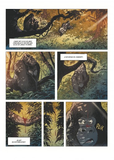 Score moyen 5 / 5Het mooiste zijspoor ooit Twee albums geleden schopte Jerom het morele testament van Willy Vandersteen keihard onderuit. Om Schanulleke en vooral Wiske te beschermen, vermoordde hij enkele handlangers van Krimson. Sindsdien is de sterkste man ter wereld een schim van zichzelf. Hij is zelfs gestopt met denken om zich toch wat beter te voelen. Het hielp niet. Samen met zijn enige vriend Lambik scheepte hij in op het eerste het beste vrachtschip met als ultieme doel vergeten te raken. Dat lukte wel. In het vorige — alweer beresterke — album was er geen spoor meer te bekennen van de twee steunpilaren van de reeks. Vandaag zijn Lambik en Jerom beland in een clandestiene haven ergens diep in het Congobekken. Ze besluiten zich naar goede gewoonte te bezatten in een bar. Al snel wordt Lambik aangesproken. Of hij niet Arthur is? Lambik is in alle staten. Heeft die man zijn broer gezien? Die is toch al jaren verdwenen! Na wat doorvragen, blijkt dat Arthur zwaar verslaafd is aan een hallucinerende plant waar je zogenaamd van zou kunnen vliegen. Sindsdien schopt hij overal keet. In het verre Antwerpen gaat het van kwaad naar erger voor professor Barabas. In De Val werd hij door Wiske al betrapt op een stiekeme relatie met zijn Congolese studente Passy Mukala. Maar nu het meisje vermoord is, leiden alle sporen naar de professor. Al drie keer na elkaar laat tekenaar Charel Cambré via sociale media weten dat hij bezig is aan zijn allerbeste De Kronieken van Amoras. Al drie keer na elkaar moeten we hem gelijk geven. Het tekenwerk is ronduit schitterend. De pagina’s waar een sluipend luipaard een onaangename ontmoeting meemaakt met een gorilla zijn nu al legendarisch. Nee, dit is geen parodie op de iconische jaguarscène uit Het Nest van de Marsupilami’s, maar pure Animal Planet. Vorige zomer bekende Charel Cambré ons dat hij bepaalde dieren niet kon tekenen omdat hij nu eenmaal Frank Pé niet is. Maar dat geldt alleszins niet voor gorilla’s, jaguars en de Congolese fauna! Die souplesse, de lichte overdrijving, uit de kunst. Bovendien wordt het hele album opnieuw naar een heel hoog niveau getild door het fijne inktwerk van Patrick Van Oppen (die de reeks Nachtwacht voortzet) en de indrukwekkende inkleuring van Shirow Di Rosso. Wat een topteam! Ook scenarist Marc Legendre scoort punten. Logisch. Wie een gorilla Gust noemt en zo de gelijknamige iconische zilverrug van de Zoo van Antwerpen alle eer betoont, kan weinig fout doen voor ons. Maar het gaat gelukkig verder. De Droom van Arthur is schitterend opgebouwd. De verhaallijnen in Congo en Antwerpen houden elkaar netjes in evenwicht en worden beide tegelijk naar een hoogtepunt gestuwd. De slotpagina is er eentje die op ons netvlies plakt. Dodelijk efficiënt. Sober en schitterend ingekleurd. Klasse. Man, dit is goed. Toch is De Droom van Arthur voor ons niet de beste De Kronieken van Amoras ooit. Het is wel het mooiste zijspoor ooit. Met de vliegende aap is er immers opnieuw een rode draad bijgekomen waardoor we nu wel echt snakken naar een afronding van deze cyclus. Als die allemaal netjes in elkaar verweven kunnen worden, dan zullen wij pas echt heel diep buigen. De jongste drie covers van De Kronieken van Amoras laten pure tristesse zien. Laat je er niet door misleiden. Binnenin vind je de allersterkste verhalen van de reeks. Topklasse. WOUTER PORTEMAN
