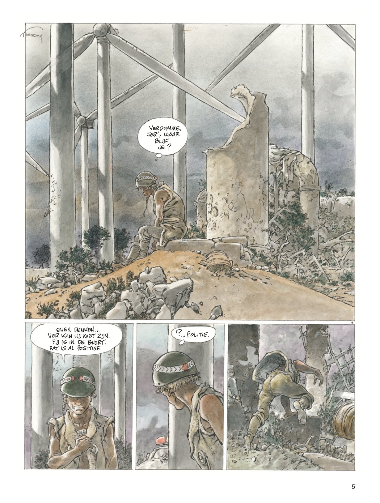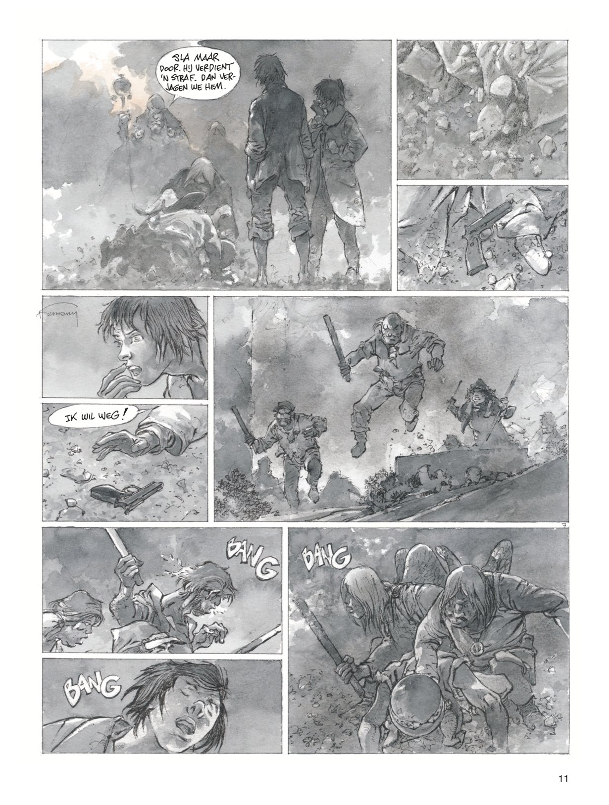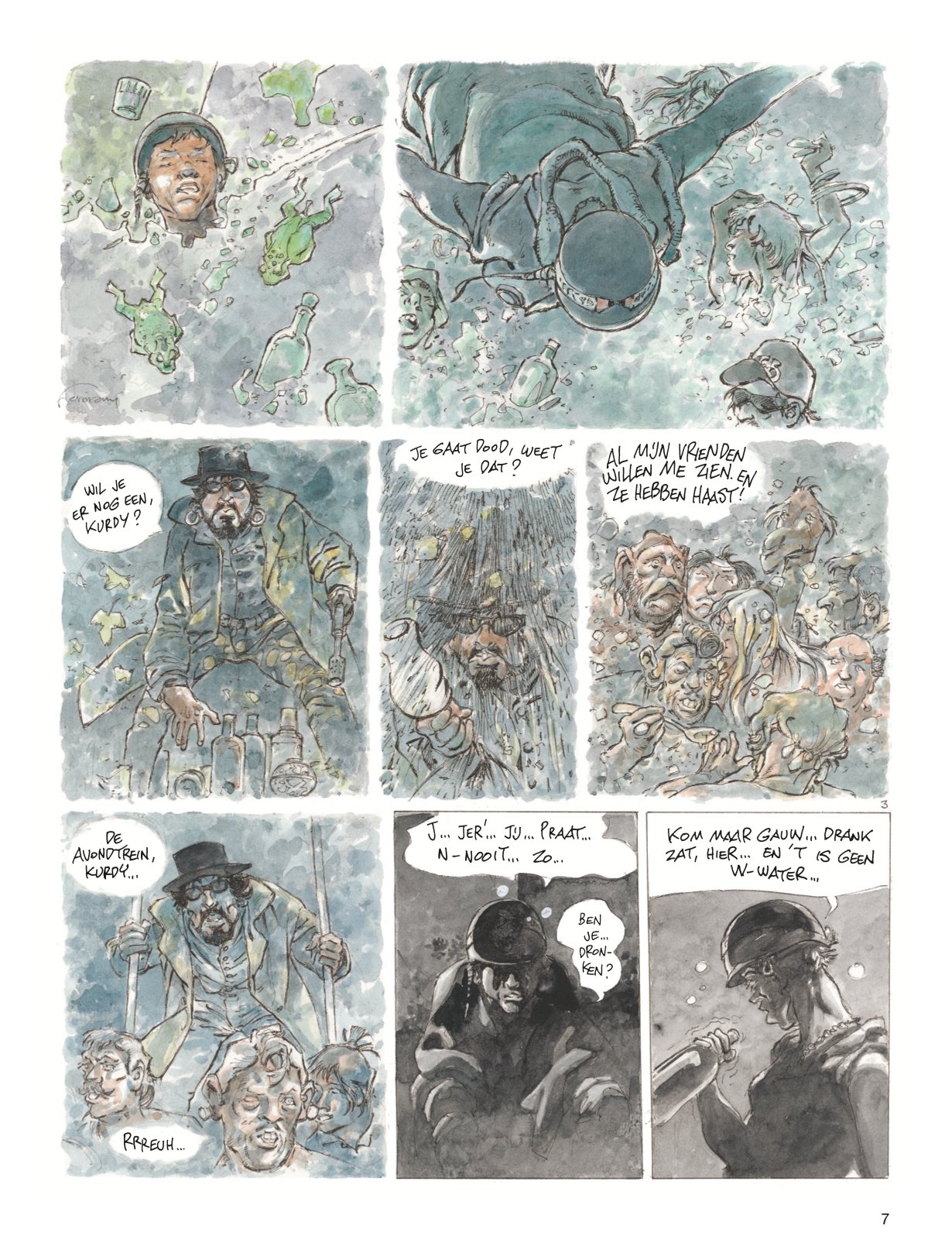 Samen kan niets hen tegenhouden. Gescheiden, zullen Jeremiah en Kurdy lijden... Kurdy's gemoedstoestand gaat van kwaad naar erger. Sinds Jeremiah op mysterieuze wijze verdween, is het leven niet meer hetzelfde voor de man met de helm. Dus drinkt Kurdy een weggegooid flesje leeg, niet wetende dat de inhoud hem hevige hallucinaties zal geven die hem elk moment dreigen af te snijden van een vaak gevaarlijke realiteit... Gelukkig vindt Kurdy een nieuwe metgezel in de jonge Sho, een verdwaalde jongen die hem vergezelt in zijn zoektocht naar Jeremiah... Als onvermoeibare tekenaar maakt Hermann van dit veertigste (!) album een toppunt van grafische virtuositeit en narratieve spanning. Met zijn tot op het bot plot en zijn sublieme aquarellen biedt dit nieuwe album van Jeremiah een steeds boeiender en betoverender inval in de duisternis van onze post-apocalyptische wereld, maar ook in die van de menselijke ziel.