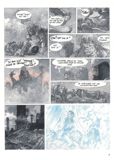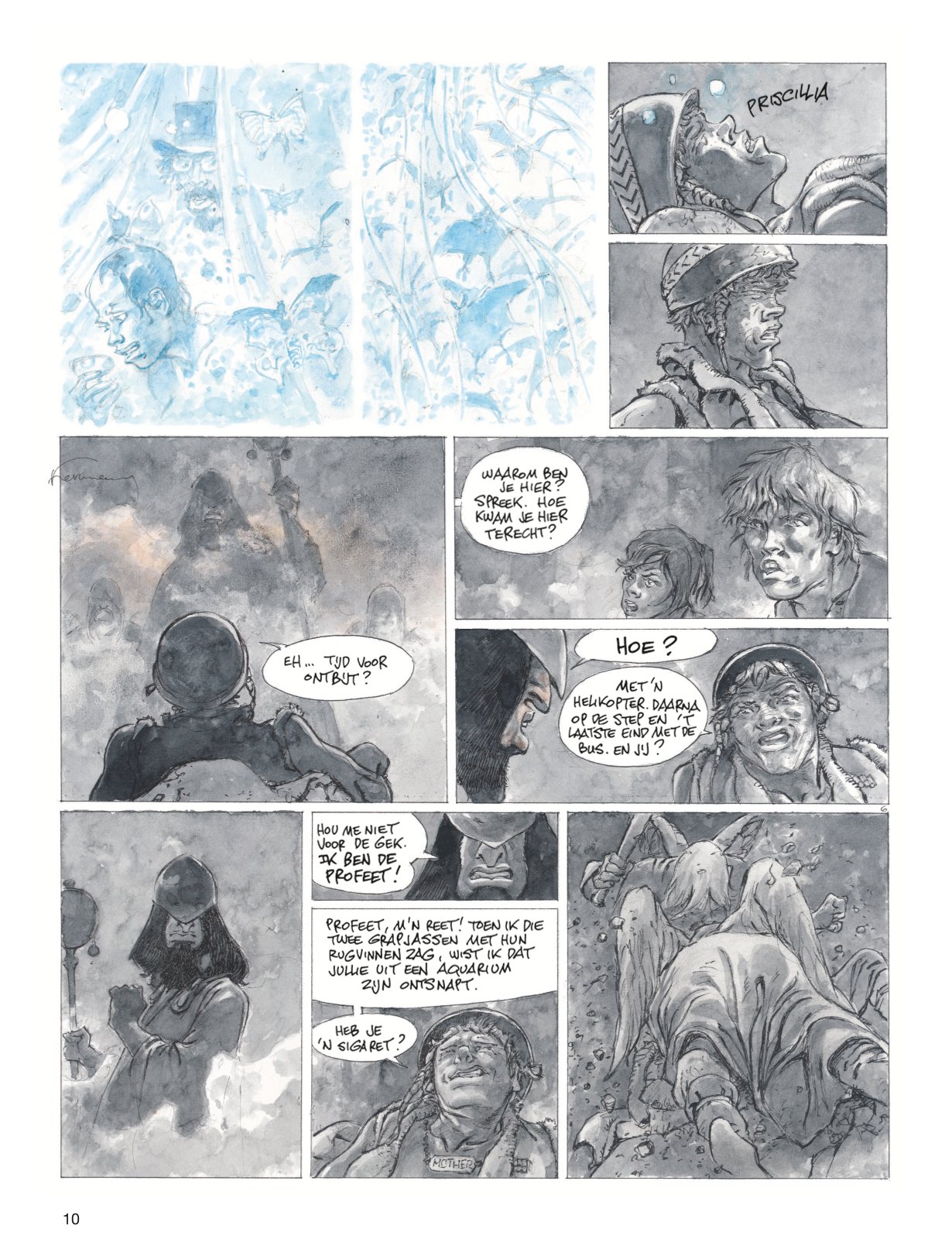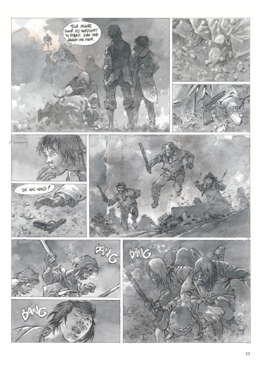 Samen kan niets hen tegenhouden. Gescheiden, zullen Jeremiah en Kurdy lijden... Kurdy's gemoedstoestand gaat van kwaad naar erger. Sinds Jeremiah op mysterieuze wijze verdween, is het leven niet meer hetzelfde voor de man met de helm. Dus drinkt Kurdy een weggegooid flesje leeg, niet wetende dat de inhoud hem hevige hallucinaties zal geven die hem elk moment dreigen af te snijden van een vaak gevaarlijke realiteit... Gelukkig vindt Kurdy een nieuwe metgezel in de jonge Sho, een verdwaalde jongen die hem vergezelt in zijn zoektocht naar Jeremiah... Als onvermoeibare tekenaar maakt Hermann van dit veertigste (!) album een toppunt van grafische virtuositeit en narratieve spanning. Met zijn tot op het bot plot en zijn sublieme aquarellen biedt dit nieuwe album van Jeremiah een steeds boeiender en betoverender inval in de duisternis van onze post-apocalyptische wereld, maar ook in die van de menselijke ziel.