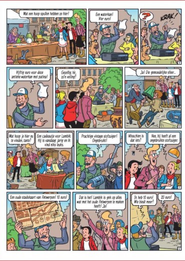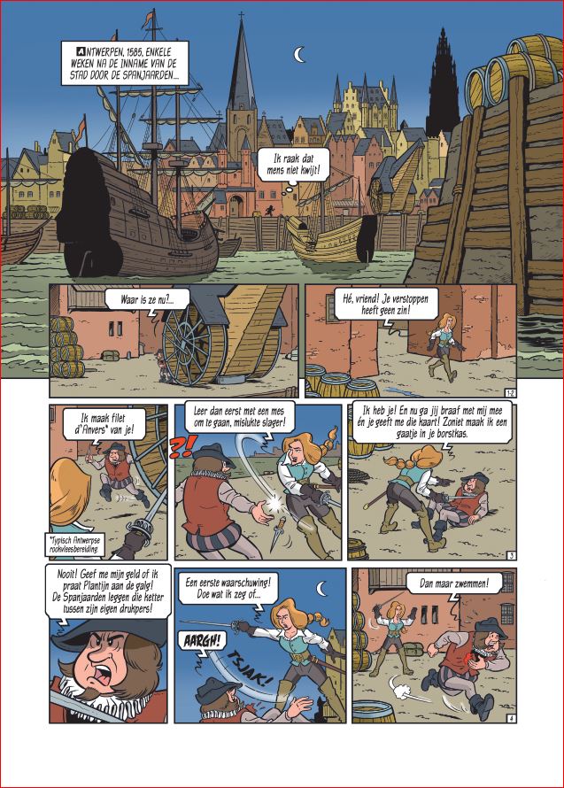 Als tante Sidonia een oude stadskaart van Antwerpen koopt voor de verjaardag van Lambik gaan de poppen meteen aan het dansen. Er staat een kruisje op de kaart en dat is volgens Lambik natuurlijk de vindplaats van een schat. Omdat het aangekruiste huisje in het heden al lang blijkt afgebroken te zijn, besluiten onze vrienden de schat te gaan zoeken in het verleden. Daar vinden ze in de woning echter een Spaanse edelman. Lambik wil de schat met niemand delen en besluit in te breken in het huis om er op zoek te gaan naar zijn schat. Ondertussen bezoeken Suske en Wiske drukker Plantijn. Omdat deze de stadskaart te koop aanbiedt in zijn winkel hopen ze dat hij iets meer kan vertellen over het kruisje. Plantijn beweert nergens van te weten, maar nadat Suske en Wiske zijn woning verlaten hebben, gaat hij zelf op onderzoek uit. Want de schat is niet wat ze lijkt en kan, als ze in verkeerde handen terechtkomt, verschrikkelijke gevolgen hebben. Als puntje bij paaltje komt, moeten Suske en Wiske ingrijpen met gevaar voor eigen leven.
