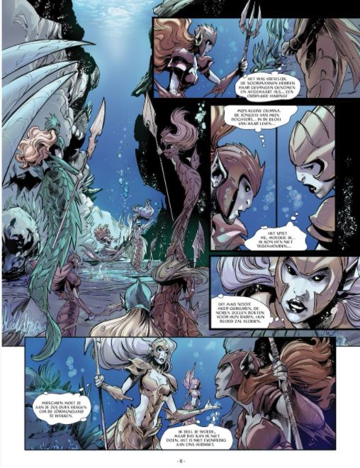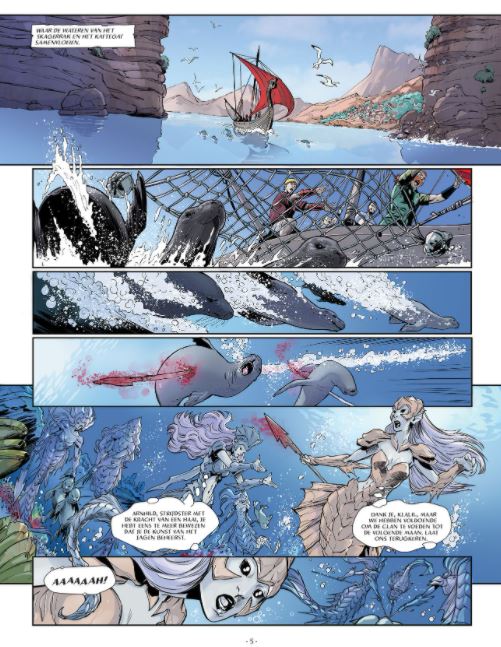 Nieuwe concept reeks in 4 delen rond het thema Vikingen en Sirenen. de covers zullen telkens getekend worden door Homs, die we kennen van de reeks 'SHI'. De auteurs van deel 1 zijn Briones ( De Heren van Agartha, De Orde van de Drakenridders (deel 4) en scenario is van Ruscak Françoise. De Noordse zeeën worden bevolkt door even machtige als wrede mythologische wezens, zoals de negen zeemeerminnen, dochters van Aegir. Deze zijn in tegenstelling tot de trotse Vikingen, klaar om alles te doen om de zeeën te controleren... Zeemeermin Arnhild heeft een angstaanjagend zeemonster weten te temmen: de Jörmungand. Met het geluid van een schelpdier slaagt ze erin om het op de Vikingschepen te sturen. Ingvald, zoon van het opperhoofd van zijn stam, besluit zijn waarde te bewijzen door het beest te verslaan. Begeleid door een halftrol, halfmenselijke medeplichtige, bedenkt hij een plan om de zeemeerminschelp te stelen...