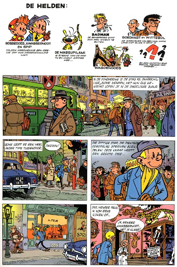 Onze twee avonturiers vertrekken voor een reportage over de gorilla's van de Kilimankiheuvel. Bandieten vrezen dat ze daar hun onwettige activiteiten zullen ontdekken. Robbedoes ziet er misschien nog steeds uit als de keurige piccolo in rood uniform die hij ooit was, maar zijn leven is nu wel heel wat avontuurlijker dan dat van een hotelhulpje. Samen met zijn onafscheidelijke vriend Kwabbernoot en Spip, de grappige eekhoorn, vecht Robbedoes overal ter wereld tegen misdadigers. En zijn tegenstanders zijn niet min: zo moet hij het opnemen tegen de verschrikkelijke geleerde Zorglub of de boosaardige piraat John Helena, tegen de Italiaanse maffia en Chinese gangsterbendes in New York of gaat hij in Palombië het geheim van een raadselachtig dier ontsluieren: de Marsupilami.