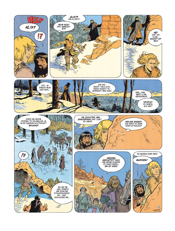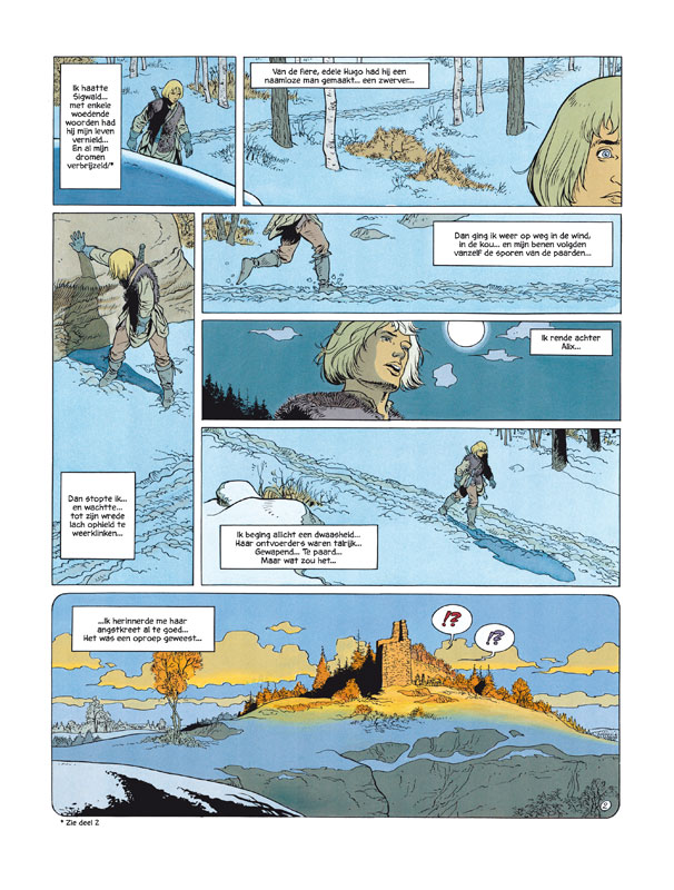 Hugo, gescheiden van Sigwald, strompelt door de koude nachten. De waarheid deed hem vluchten... Tijdig weet hij de plaats te vinden waar Alix gevangen is, en weet haar te bevrijden. Maar Hugo komt er niet heelhuids vanaf ...