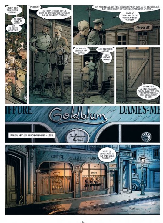 Nieuwe reeks over twee Joodse broers gedurende het interbellum en de tweede wereldoorlog Er bestaat ook een kennismakingspakket van de eerste twee delen = De Gebroeders Rubinstein Na slechts enkele maanden zult gij Solomon en Mozes Rubinstein terugvinden, zo verschillend en toch zo hecht in hun genegenheid voor elkaar. Twee joodse broers worden ondanks zichzelf meegesleurd in de stuiptrekkingen van de 20e eeuw. Als gevangene in het kamp van Sobibor weet Mozes nog niets over zijn organisatie of zijn werkelijke doel. Omdat hij bij zijn aankomst met alle anderen zei dat hij kapper was, wordt hij opgenomen in het contingent Joden in dienst van de nazi-officieren. Hij leerde het kappersvak in Parijs, in 1929, nadat hij zijn broer Salomon op de vlucht had gevolgd, beschuldigd van een misdaad die hij niet had begaan... Twee striptekenaars in deze stripreeks namelijk Le Roux Etienne en Chevalier Loīc, deze laatste striptekenaar tekent vooral de decors Le Roux Etienne kennen we ook van volgende stripreeksen of delen van die stripreeksen 1. 14 18 2. De vloek van Amber 3. Dierenriem Strip scenarist Luc Brunschwig kennen we dan van o.a. volgende stripreeksen 1. De Macht der Onschuldigen 2. De Nieuwe Avonturen van Bob Morane 3. Holmes 4. De Nieuwe avonturen van Mick Mac Adam 5. urban 6. XIII Mysterie 7. De lach van een clown 8. Conan de Avonturier