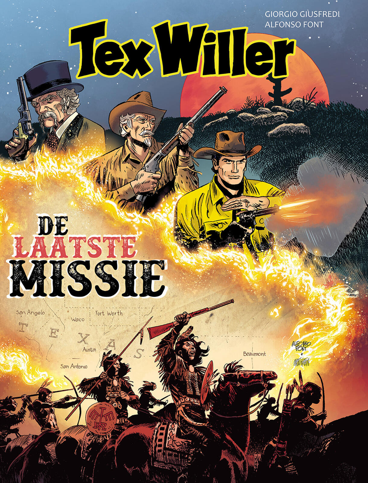 één van de leukste en beste westernreeksen waarbij diverse striptekenaars steeds een afgerond deel tekenen. we kijken in ieder geval iedere keer enthousiast uit naar een nieuw deel van deze cowboy! In deze kleurenreeks zijn al behoorlijk wat roemrijke Italiaanse tekenaars de revue gepasseerd om een compleet verhaal van de bekendste Italiaanse stripheld te tekenen. Deze keer is Alfonso Font aan de beurt, een Spanjaard. De 75-jarige Font gaat al enkele decennia mee en is nog steeds actief. We kennen hem van onder meer De Bannelingen van de Aarde, Bri D'Alban, Het Doolhof van de Draak, De Gevangene van de Sterren, Jon Rohner, Héloïse van Montfort, Taxi, enzovoort. Hij tekende ook al Tex Willer Classics 12: Eigen Rechter. (ssz) Op scenario van Giorgio Giusfredi tekent hij het volgende verhaal: '‘Lucky’ Joe Beauregard heeft niets meer te verliezen. Vandaag moet hij op pad om, net als toen, Texas te redden van comancheros, hopelijk voor het laatst. Als hij de ravijnen van de Sacramento Mountains intrekt om zich te meten met El Morado en diens meedogenloze bendes is één ding onveranderd: Tex Willer en Kit Carson rijden nog steeds aan zijn zijde mee.'