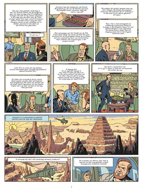 Score moyen 4 / 5Goed leesbaar actieverhaal met hoog tempo Toen striplegende Jean Van Hamme jaren geleden zijn afscheid aankondigde, vreesden we dat er inderdaad geen albums van zijn hand meer zouden verschijnen. Gelukkig kan de oude meester het soms niet laten en verschijnt er incidenteel nog weleens een album die hij heeft geschreven. Na De Zaak Francis Blake (dat de massieve comeback van de reeks inluidde), Bericht uit het Verleden en het tweeluik De Vloek van de Dertig Zilverlingen is De Laatste Zwaardvis alweer zijn vijfde album in de reeks Blake en Mortimer. Van Hamme is terecht een van de meest succesvolle schrijvers van de laatste veertig jaar en ook nu bewijst hij nog altijd een goed verhaal te kunnen vertellen. We durven gerust te stellen dat dit album tot de betere Blake en Mortimers behoort. Hij houdt zich verre van grote pandaberen of buitenaardse wezens en gebruikt de sterke punten uit de reeks op een zeer straffe wijze. Het succes van Blake en Mortimer begon met Edgar P. Jacobs' Het Geheim van de Zwaardvis en dit verhaal is een indirect vervolg op deze klassieker. Chronologisch gezien vallen de twee delen van De Vallei der Onsterfelijken tussen Het Geheim van de Zwaardvis en deze De Laatste Zwaardvis. Na de val keizer Basam Dandu staan de laatste vijf door Mortimer ontworpen zwaardvissen nog in hun basis in de Himalaya. De Britse regering besluit deze toestellen terug te halen, maar hebben daarbij buiten de plannen van de IRA gerekend. Zij krijgen hulp van de gevluchte nazimisdadiger Otto van Rausch. Schrijver Van Hamme baseert zich hierbij op waargebeurde feiten, ten tijde van de Tweede Wereldoorlog waren er namelijk vanuit de IRA inderdaad plannen om een aanslag te plegen op Buckingham Palace. Met behulp van geweld, list en bedrog slagen de huurlingen onder leiding van kolonel Olrik erin om een Zwaardvis te bemachtigen. Kapitein Blake krijgt de nobele taak om deze plannen tijdig te voorkomen. Er volgt een goed leesbaar actieverhaal met een hoog tempo. Sommige details lijken achteraf wat overbodig, maar het meest opvallend is de hoeveelheid slachtoffers die er vallen en de voor een Blake en Mortimer opvallende hoeveelheid bloed dat vloeit. Dat Olrik geen koorknaap is, wisten we al, maar nu liquideert hij mensen zonder een spoor van schaamte. Dat Mortimer in al die jaren geen hersenbeschadiging heeft opgelopen van al die keren dat hij is neergeslagen, mag langzaam een wonder heten. Het tekenaarsduo Peter van Dongen en Teun Berserik heeft indruk gemaakt met hun vorige twee albums en ook nu geven ze blijk dat ze de Klare Lijn, die deze reeks eigen is, goed beheersen. Op sommige bladzijden wijken de tekeningen af alsof er een andere stijl is gehanteerd. Iets wat ook gevolgen heeft voor de herkenbaarheid van de personages. Vergelijk maar eens het personage Marge op bladzijde 29 en 63, waar ze er niet geheel hetzelfde uitziet. Ondanks bovenstaande bevindingen vinden we het nog steeds een prima Blake en Mortimer waarmee we ons goed hebben geamuseerd. De laatste Van Hamme" was het overigens niet. Naar eigen zeggen wel voor Blake en Mortimer, maar hij heeft inmiddels ook een vervolg geschreven op Jacobs' debuutalbum De "U"-straal dat door Christian Cailleaux en Étienne Schréder wordt getekend. Ook deel 14 van Wayne Shelton staat ons nog te wachten en het vervolg van de trilogie Het Fortuin van de Winczlavs, een prequelspin-off van Largo Winch. Al deze verhalen heeft hij de voorbije jaren al wel volledig geschreven. Stripspeciaalzaak"