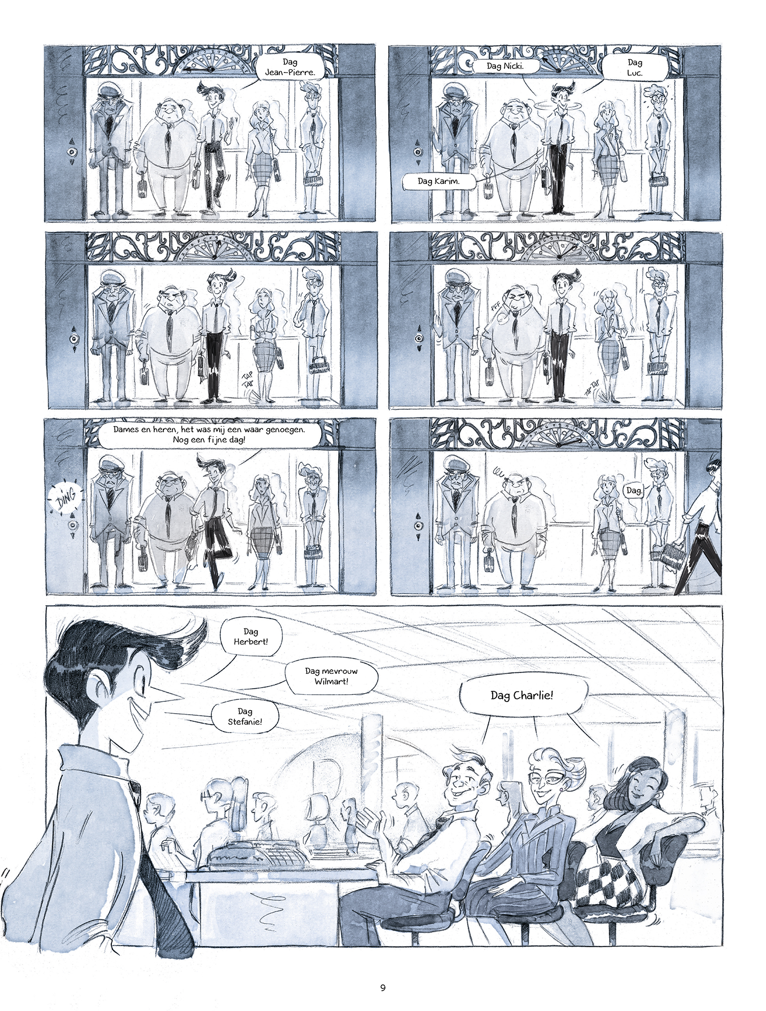 Soms ben je direct verkocht om een strip te kopen. Een lieve, superkleurrijke cover in verschillende stijlen, een heel uitnodigende tekst op de achterflap en een mooie uitgave. Bingo. Zo moet het. Zo hoort het. Gezwind begon ik te lezen. Het verhaal start als een lauwe Big Brother-strip zonder echt pijn te doen, zoals pakweg S.O.S. Geluk of Urban. Bovendien overtuigde de hoofdfiguur Charlie me helemaal niet. Dat vastgebeitelde glimlachje en die grote mangaogen zonder pupillen maakten dat ik geen connectie met en dus ook geen sympathie voor de jongeman kreeg. Nochtans sprak de grafiek van de nevenfiguren en hun cynische omgeving me wel onmiddellijk aan. Tja.