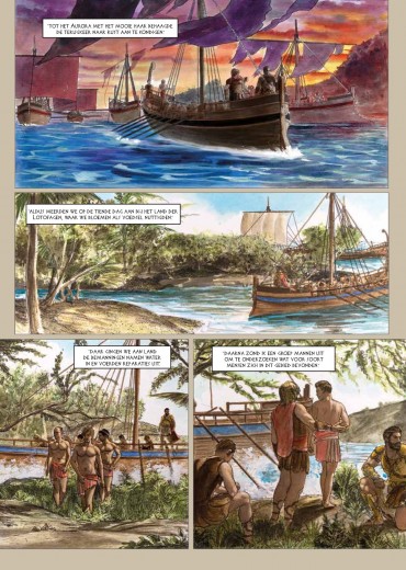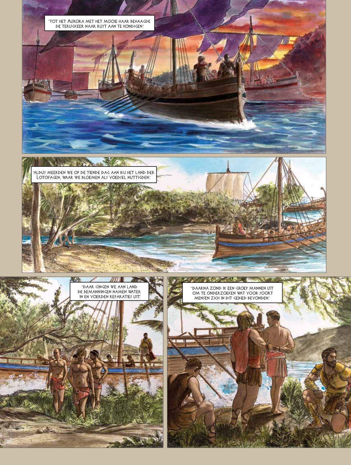 OPGEPAST HIER KOMT EEN SPECIALE ACTIE MEE..... Odysseys met mok Dit tweede deel vertelt het fantastische reisverhaal van Odysseus naar het land van de Lotofagen, waar ze hallucinogene bloemen eten, en het eiland van de Cyclopen, die voor de sluwheid van de held bezwijken. Het beschrijft zijn vriendschap met Aeolus, de bewaker van de winden, zijn ontsnapping aan de kannibalistische Laestrygonen en zijn strijd de tovenares Circe. Odysseus 2/3. Het eiland van de pleziertjes Tekst & tekeningen: Cosimo Ferri ISBN: 9789464603996
