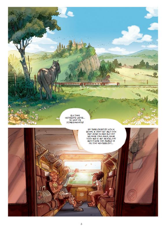 Een Familiaal Mysterie! Voor Moederdag willen de drie zusjes Grémillet hun moeder een fotoalbum geven. Wanneer ze de zolder doorzoeken, vinden ze een foto van hun moeder die zwanger poseert voor een erg speciale boom. Maar wie is de baby? Er klopt iets niet aan de foto! Welk mysterieus verleden heeft hun moeder altijd voor hun verzwegen? Met zijn virtuoze tekeningen brengt Alessandro Barbucci deze moderne familiekroniek tot leven. Achter de onthulling van een drama uit het verleden gaat de onvoorwaardelijke liefde schuil van een moeder voor haar dochters. Elk van de drie zusters heeft haar eigen karakter: Sarah, de autoritaire oudste, Cassiopeia, de kunstzinnige jongere zus, en Lucille, de jongste, die alleen met haar kat praat. De mooie stenen van de stad, de plantentuin, de weelderige vegetatie, de kleine marktjes… de lezer zal de betoverende wereld van Barbucci en Di Gregorio niet meer willen verlaten! Tekenaar Barbucci Alessandro tekent hier een bijzonder mooi jeugdstrip voor jong en oud. De tekeningen en het verhaal zijn een prachtige fusie van emoties en spanning. voor alle leeftijden. De in Genua geboren Barbucci ( 1973) tekende ook al andere stripreeksen die telkens zijn tekentalent bewijzen. Een streling voor het oog. • Ekho de Spiegelwereld • Sky-Doll Stripscenarist Di Gregorio maakt hier zijn eerste succesvolle reeks nadat hij al meewerkte aan enkel projecten zoals monster allegory, Creepy Past,... maar deze werden niet vertaald. Deze wel en gelukkig want hoe mooi is dit!!! Maak kennis met Sarah, Cassiopée en Lucille ofwel de drie zusjes Vergeetmeniet. Een echte nieuwe strip reeks voor de hele familie. Scenarist is Di Gregorio en tekenaar Barbucci ( bij ons vooral gekend van Sky Doll en Ekhö ) samen hadden ze reeds samengewerkt in de serie Monster Allergie waarbij bij ons maar één album vertaald werd door uitgeverij Fontein. Sarah : Droomt steeds over “het bos van de kwallen” Cassiopée : Beschikt over een bijzonder hoge gevoeligheid Lucille : Heeft een bijzondere relatie met dieren Alle drie gaan ze op zoek naar het geheim dat hun moeder voor hen verborgen houdt. Met deze strip willen de auteurs de lezers ( vooral kinderen dan) aanzetten tot het bevragen van de familiegeheimen of vragen te stellen wie wat is en doet binnen de familie. Het schept een hechtere band met de familieleden om te weten waar we vandaan komen en stelt ook ons in staat om beter de maatschappij te begrijpen. Waarom de auteurs voor “kwallen” kiezen is vooral omdat ze zeer feeëriek zijn. Eerst wou Barbucci “spookjes” tekenen maar dit werd toch weerhouden. Het grafische werk van Barbucci heeft duidelijk een “manga” invloed maar dat deed hij bewust om zich te richten naar een jonger publiek dat hij hoopt te bereiken op die manier. Enkel wanneer de Zusjes Vergeetmeniet ruzie maken verandert de tekenstijl naar de klassieke vorm. Een reeks om naar uit te kijken.