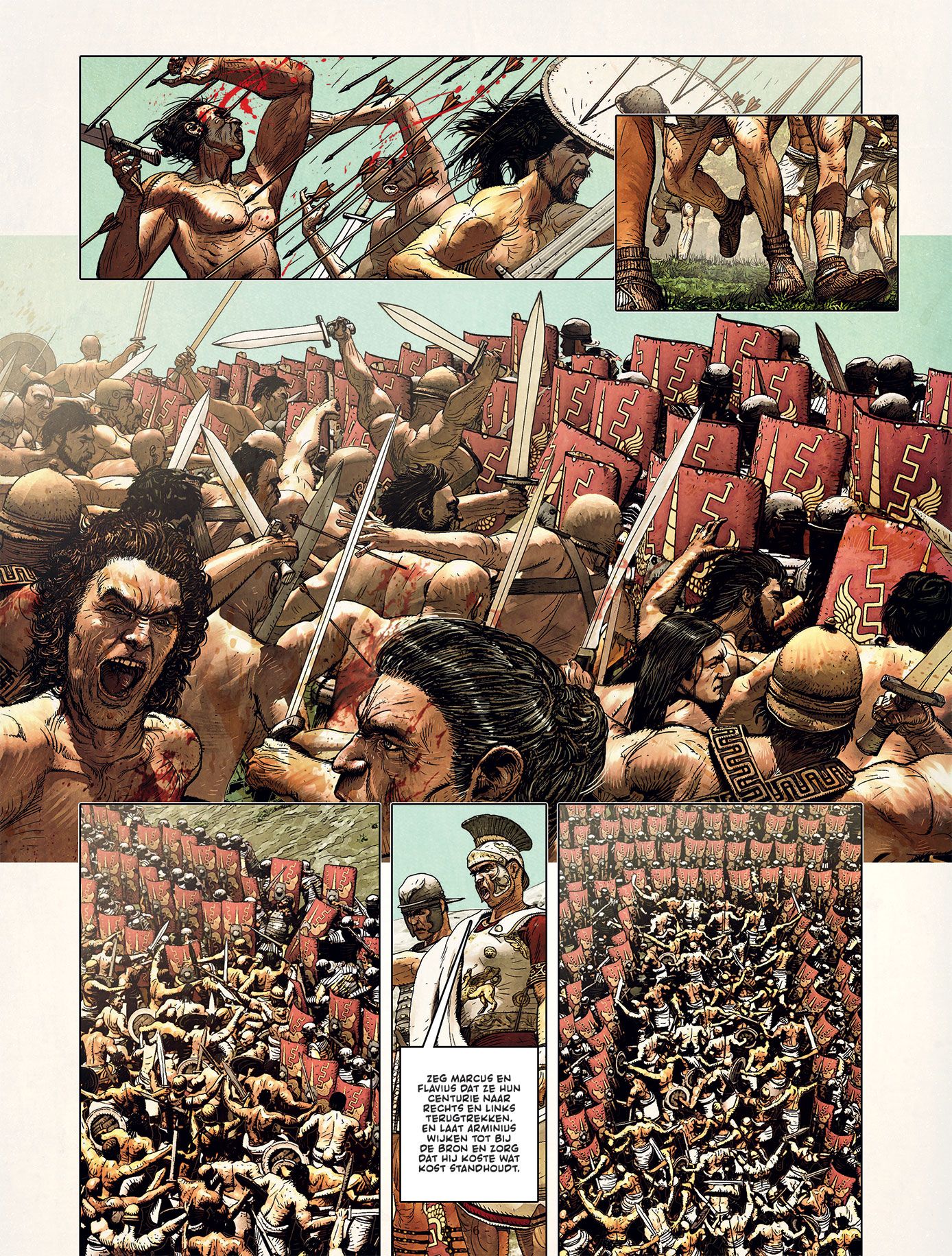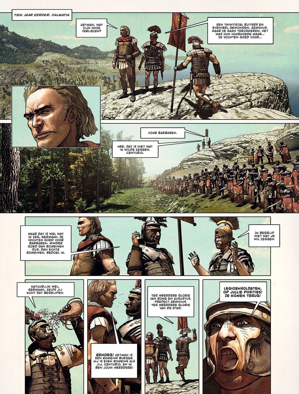 Het duo achter De spion van Caesar, Jean-Pierre Pécau en Fafner, pakt weer uit met een verhaal dat bulkt van de actie en indrukwekkende tekeningen • Een zwarte bladzijde uit de Romeinse geschiedenis wordt zo een plezier om te lezen! In het jaar 9 slachten Arminius en Flavius, soldaten van het Romeinse legioen, een leger barbaren af. Ze liggen uit te rusten met andere legioensoldaten wanneer een misplaatste grap leidt tot een driest gevecht tussen Arminius en Flavius, waarbij Flavius tragisch om het leven komt… en de radertjes van het lot beginnen te draaien. De Romeinse legioenen hadden de naam onoverwinnelijk te zijn, maar datzelfde jaar lijden drie Romeinse legioenen een verpletterende nederlaag tegen de Germanen, onder leiding van diezelfde Arminius, de man van het jaar 9.