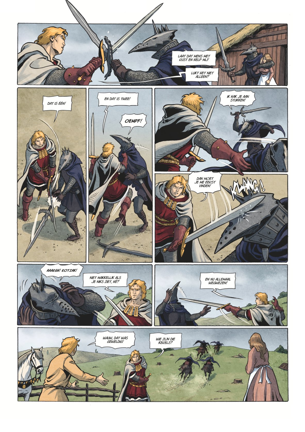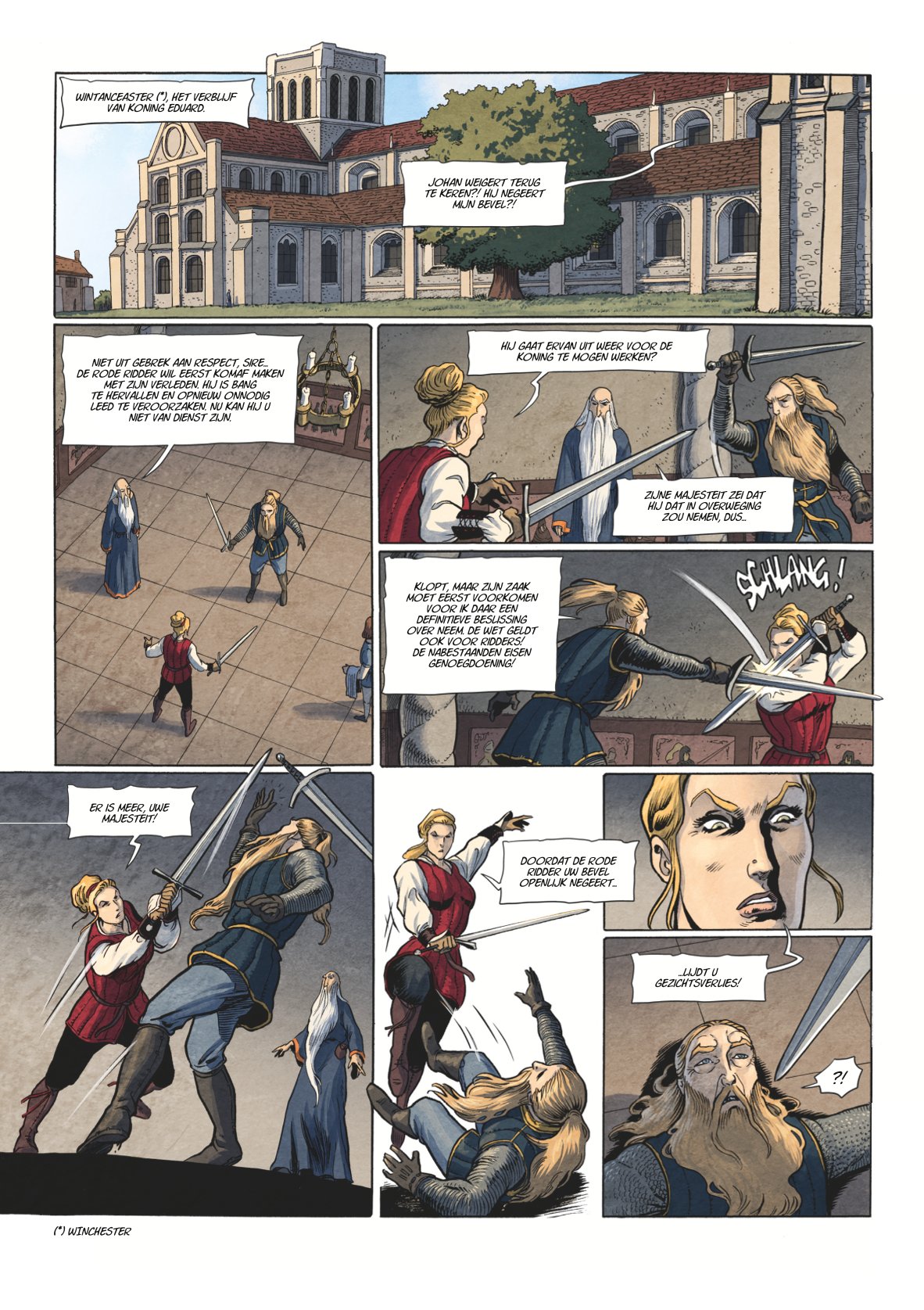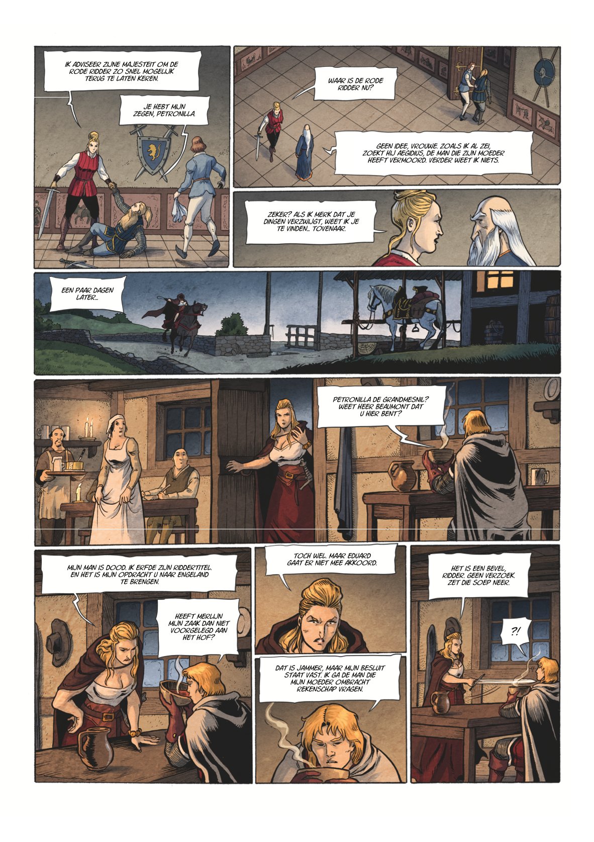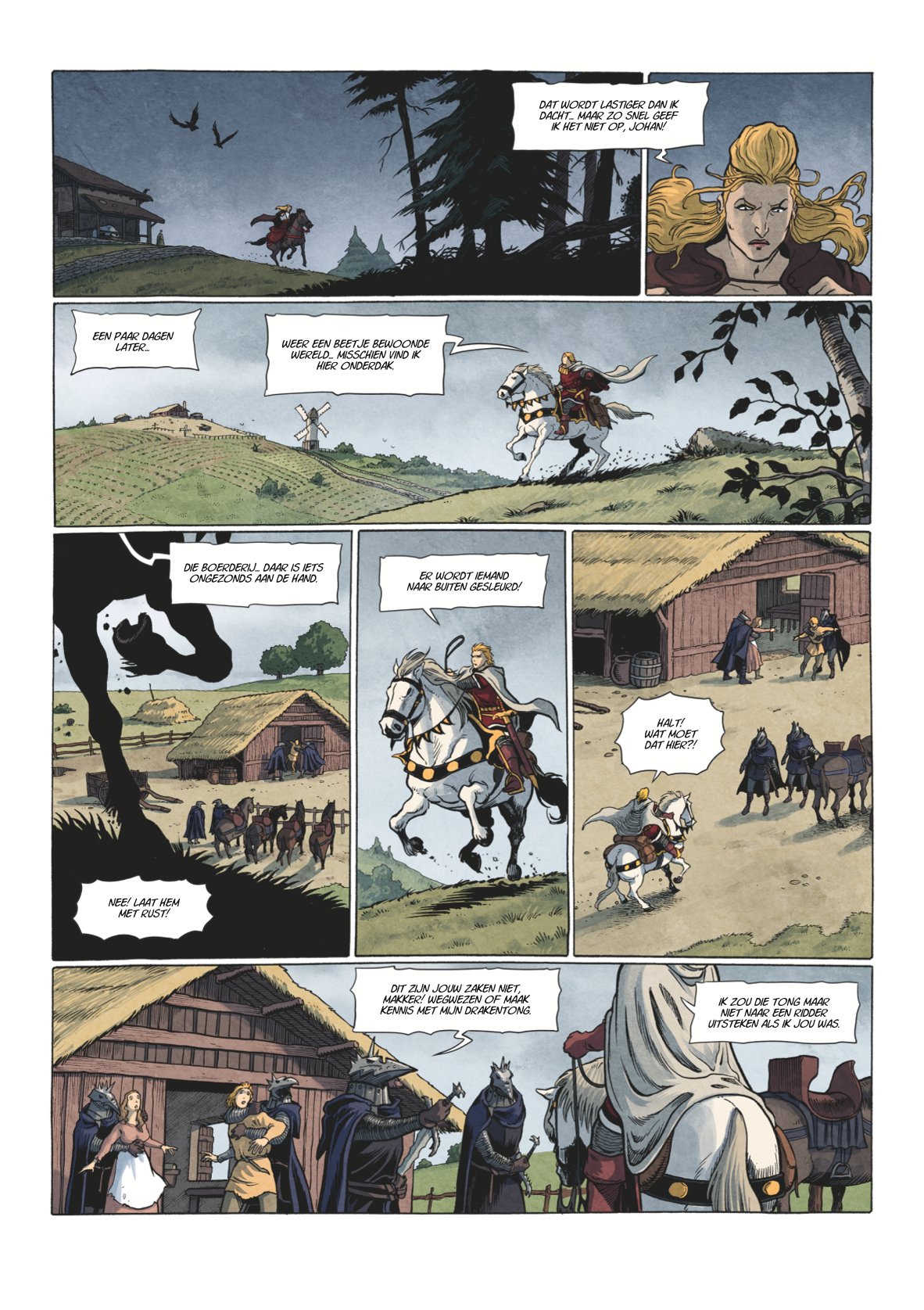 Op de vlucht voor koning Eduard, die hem wil berechten na zijn moordaanslag, komt Johan terecht in de gouw van heer Johannes. Daar heeft hij een onzachte ontmoeting met een gemaskerde bende die spoorloos mannen laat verdwijnen. De rode ridder voelt de gouwgraaf aan de tand maar deze beweert machteloos te staan tegenover de boeven. Johan onderzoekt de zaak en valt van de ene verbazing in de andere. Helaas beantwoorden zijn ontdekkingen maar weinig vragen en brengen ze hem in groot gevaar. Johan besluit hulp te zoeken bij de plaatselijke koning om orde op zaken te stellen. Maar die missie wordt abrupt onderbroken en de verschrikkelijke waarheid leidt naar een bloedige eindstrijd.