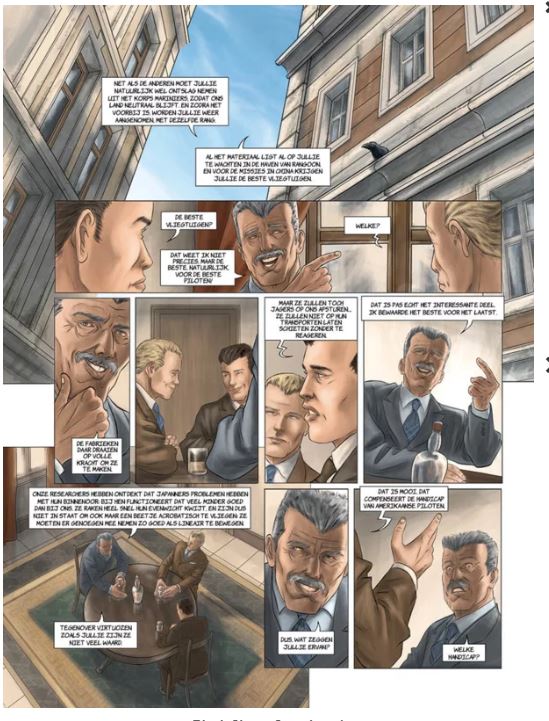 COMPLEET VERHAAL IN 6 HARDCOVER ALBUMS GELIMITEERDE OPLAGE! De volledige reeks is verkrijgbaar in promopakket Black Sheep Squadron Compleet Vrijwel in hun eentje stopt dit eskader van jonge piloten het Japanse offensief, waarmee ze een einde maken aan de onoverwinnelijkheid van het keizerlijke leger. Boyington moet helaas het toneel verlaten om te genezen, maar hij keert snel terug naar de strijd in de Stille Oceaan om daar met slechts enkele mannen de meest formidabele oorlogsmachine te vormen. Het ware verhaal van Gregory Boyington en zijn “black sheep”. Steve en Frank, twee jonge piloten van jachtvliegtuigen, sluiten zich aan bij de American Volunteer Group om de strijd aan te gaan met de japanners tijdens de inval in China. Daar ontmoeten ze het bijzondere personage Greg Boyington. Hij start zijn korte maar heftige oorlogscarrière juist daar, bij de Flying Tigers, voor zijn fameuze wapenfeiten in de Stille Oceaan. Vrijwel in hun eentje stoppen de Flying Tigers het Japanse offensief, waarmee ze een einde maken aan de onoverwinnelijkheid van het keizerlijke leger. Boyington moet het strijdtoneel helaas met verwondingen verlaten, maar hij keert snel terug naar de strijd in de Stille Oceaan. Daar vormt hij, met slechts enkele mannen, een formidabele oorlogsmachine