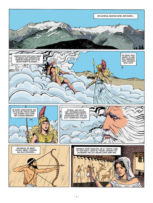 De reis van Odysseus: een buitengewoon stripverhaal Aan het einde van de Trojaanse oorlog besluit Odysseus terug te keren naar Ithaca, maar de terugweg is lang en moeilijk. Geconfronteerd met de toorn van de goden van Olympus, moet hij vele gevaren het hoofd bieden: de nimf Calypso, de prinses Nausicaa, de Cyclopen, de tovenaar Circe en de Sirenen. Wanneer hij eindelijk in Ithaca aankomt, wordt hij herenigd met zijn zoon Telemachus, maar hij moet nog steeds vechten om zijn koninkrijk te bevrijden van kwaadaardige vrijers om zijn geliefde Penelope terug te winnen.