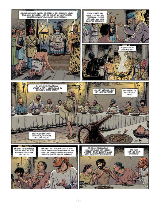 De reis van Odysseus: een buitengewoon stripverhaal Aan het einde van de Trojaanse oorlog besluit Odysseus terug te keren naar Ithaca, maar de terugweg is lang en moeilijk. Geconfronteerd met de toorn van de goden van Olympus, moet hij vele gevaren het hoofd bieden: de nimf Calypso, de prinses Nausicaa, de Cyclopen, de tovenaar Circe en de Sirenen. Wanneer hij eindelijk in Ithaca aankomt, wordt hij herenigd met zijn zoon Telemachus, maar hij moet nog steeds vechten om zijn koninkrijk te bevrijden van kwaadaardige vrijers om zijn geliefde Penelope terug te winnen.