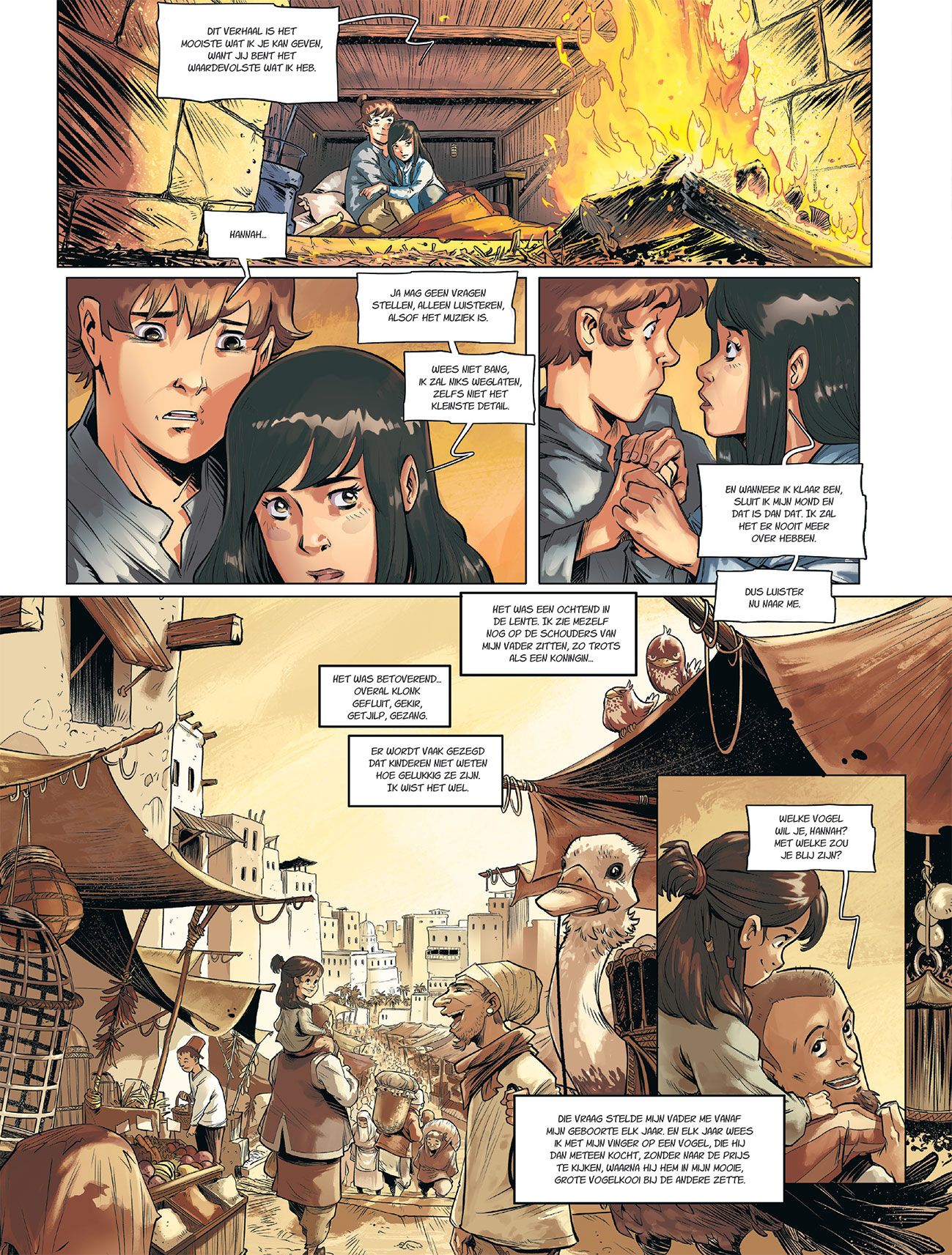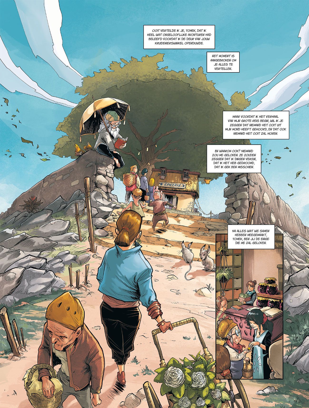 Slot van dit tweeluik gebaseerd op een boek van Jean-Claude Mourlevat (Oceaankind), laureaat van de Astrid Lindgren Memorial Award 2021 – de offi- cieuze Nobelprijs voor Kinderliteratuur • Maxe L’Hermenier weet als geen ander de beeld- rijke taal van kinderlite- ratuur om te zetten naar een stripscenario; met speelse tekeningen van Djet • Met een leuk dossier achter in het album In het eerste deel las je hoe Hannah Tomeks kruidenierszaak binnenwandelde en er vroeg naar het water van de Qjar, een rivier, water dat voorkomt dat je sterft. Samen met hem liepen we in het spoor van Hannah. In dit tweede deel vertelt Hannah het verhaal van haar tocht over de duizelingwekkende Hemelse Weg en dwars door de woestijn. In haar verhaal komen we in nieuwe streken maar komen we ook langs bekende plekken: het bos der Vergetelheid, de bloemenweide, de oceaan… en Tomeks kruidenierswinkeltje.