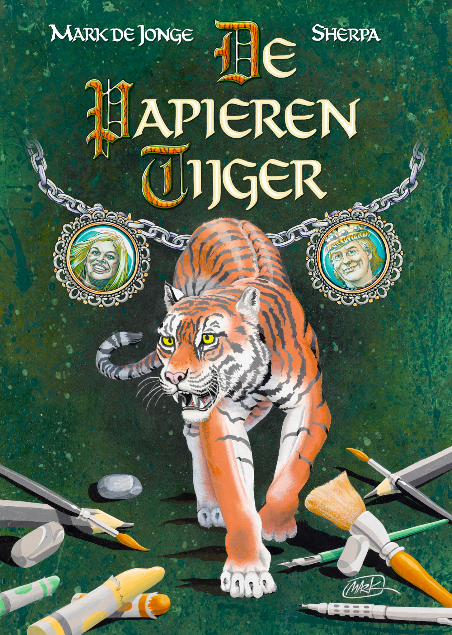 Een spectaculair debuut! Drie jaar lang werkte Mark de Jonge aan dit bijzondere sprookje over een koning en zijn koningin en de kunstenaar die hun huwelijk moest redden. Het bijzondere is dat alle figuranten lijken op bekende Nederlanders: koning Willem-Alexander en koningin Maxima, Geert Wilders, Jan Wolkers, Wesley Sneijder en andere topvoetballers ... Door De Jonges fabuleuze tekentalent lijken alle stripfiguren werkelijk 'uit het leven gegrepen' ... De papieren tijger is een debuut dat niet onopgemerkt zal blijven in de Nederlandse media!