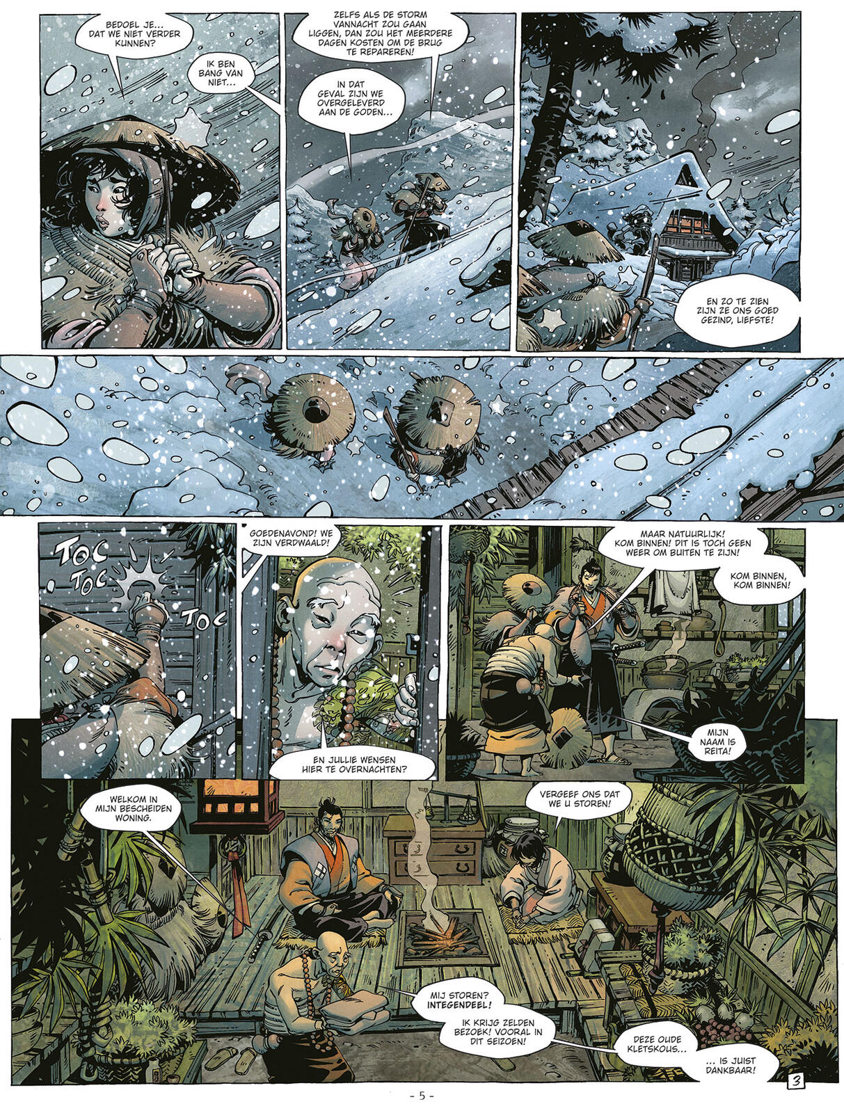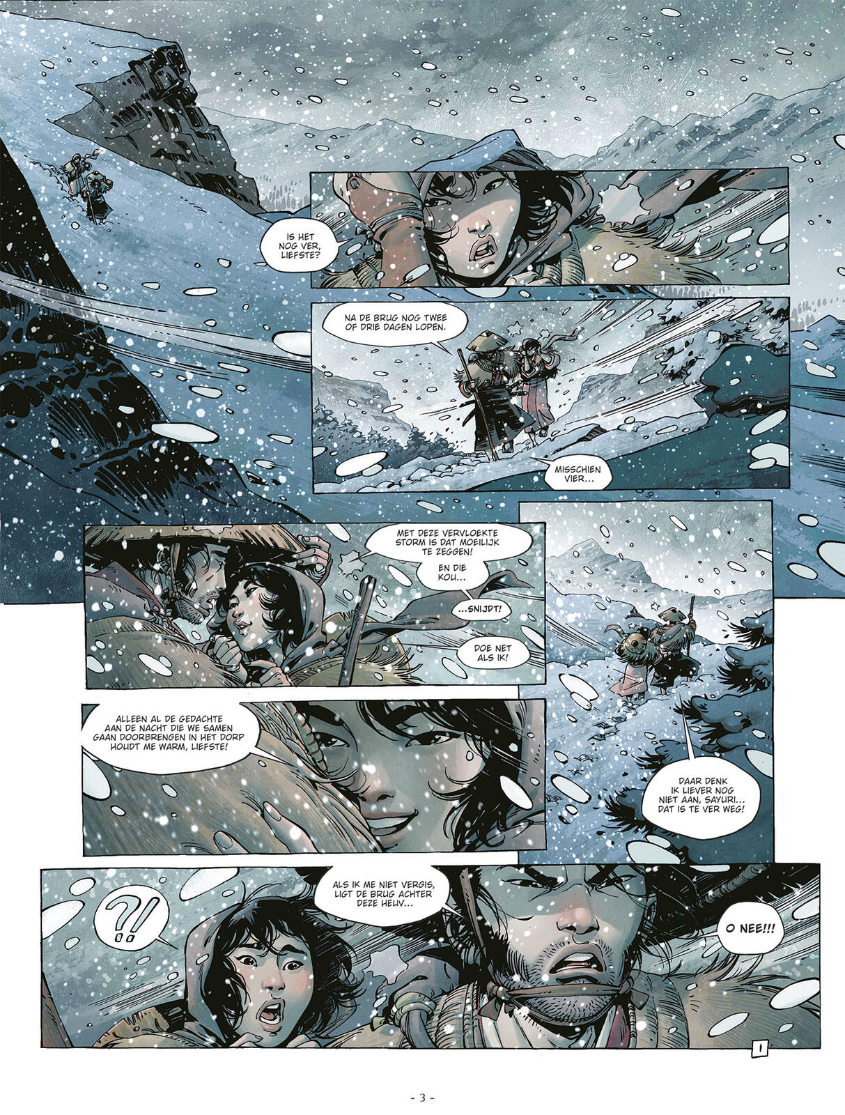 er bestaat ook een versie met ex-libris gelimiteerd op slechts 100 ex. ( afbeelding zie preview) op = op een tekening die Cristina Mormille heel speciaal voor onze stripwebklanten maakte, nu al een collector item. Japan. In de hoop de keizer te ontmoeten, aan wie hij trouw wil zweren, doorkruisen Takeo en zijn metgezel Sayuri het land... maar ze zullen nooit op hun bestemming aankomen! Een hevige sneeuwstorm en een kapotte brug dwingen onze twee vrienden hun toevlucht te zoeken in een klein, bijna verlaten dorp. Al snel zitten ze vast. Een hinderlaag waarvan de uitkomst veel bewogen belooft te zijn..