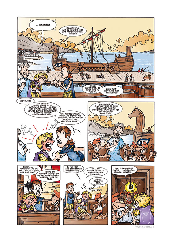 Dit tweede album is een volledig avonturenverhaal waarin Alexander – Samen met zijn vrienden Aristoteles, Hephaestion en Diomedes – op zoek gaat naar de sandalen van Hermes die de over magische gaven zouden beschikken. Maar daar wil de Atheense staatsman Demosthenes een stokje voor steken ...