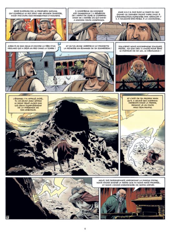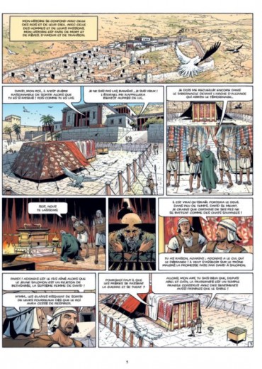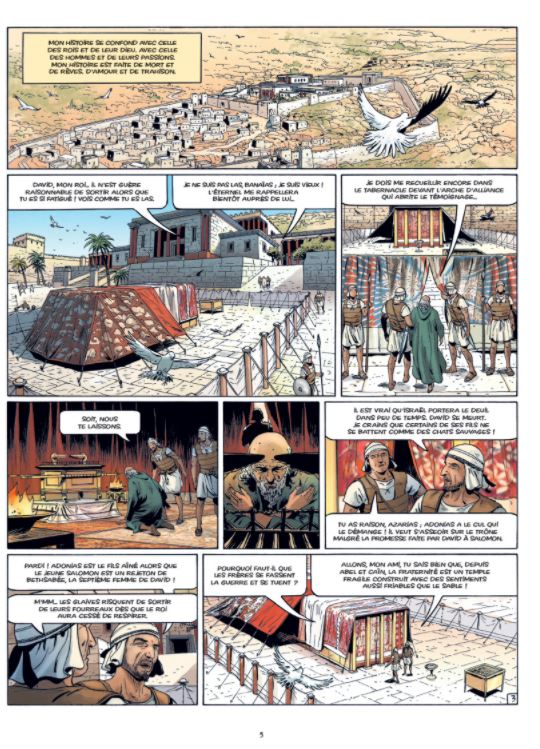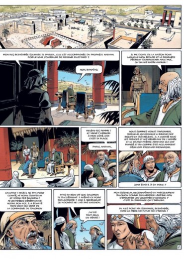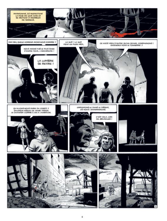 Score moyen 4 / 5“Het epos van de Vrijmetselaars” wordt een twaalfdelige reeks waarbij de in Parijs geboren Didier Convard als scenarist werd aangetrokken. De 71-jarige Fransman is uiteraard ook bekend als tekenaar en auteur van kinderboeken. Voor het eerste deel “In de schaduw van Hiram” werd niet toevallig door Convard Denis Falque (51), ook van Franse origine, als tekenaar geëngageerd. Het duo werkte in het verleden samen al geweldige series uit als “De Geheime Driehoek – I.N.R.I en Hertz” , “De Bewakers van het Bloed” en de jongste jaren ook “Lacrima Christi”. Ook nu weer toont Convard zijn gedrevenheid als scenarist in een allesbehalve gemakkelijk onderwerp als de vrijmetselarij. In dit eerste album “In de schaduw van Hiram” voert Convard de lezer terug tot de 10de eeuw voor Christus toen Koning David regeerde over Israël. Die voelt zijn einde naderen en roept niet zijn oudste zoon Adonia maar Salomon uit tot zijn opvolger. Die laatste is een nakomeling van zijn zevende vrouw Batseba. Salomon belooft op het sterfbed van zijn vader dat hij eindelijk voor de grote tempel van Jeruzalem zal zorgen die onder meer de Ark van het Verbond kan herbergen. Dankzij de koning van Tyrus komt Salomon in contact met meester Hiram. Die aanvaardt de bouw opdracht en mag als beloning de mysterieuze steen van God inmetselen. Op die steen staan een ster, een kruis en een halve maan afgebeeld. Daardoor wordt Hiram één met het huis van God in de volgens hem tempel van de humaniteit. Op die manier wordt hij ook de stichter van de legendarische Orde. In de 6de eeuw voor Christus volgt dan de verwoesting van de tempel en splijt de Goddelijke steen in drie stukken. Het zijn drie weduwen die elk voor hun deel de broederschap zullen herstellen… Ook nu weer zorgt Denis Falque voor heel strak en knap uitgewerkt realistisch tekenwerk. Angélique Césano kleurde dan weer de pagina’s heel toepasselijk in. De eerste twee pagina’s zijn een bloederige flashforward in zwart-wit en zorgen onmiddellijk voor een dynamische start. Dit wordt zonder twijfel een nieuwe topreeks voor Convard en Co.
