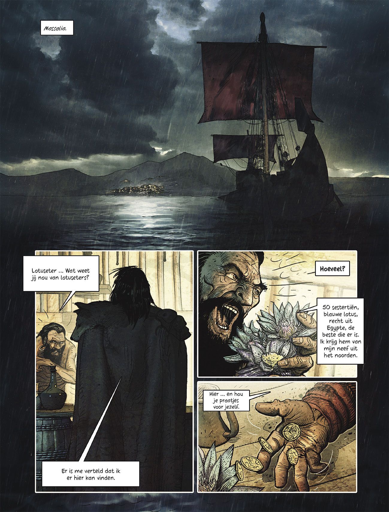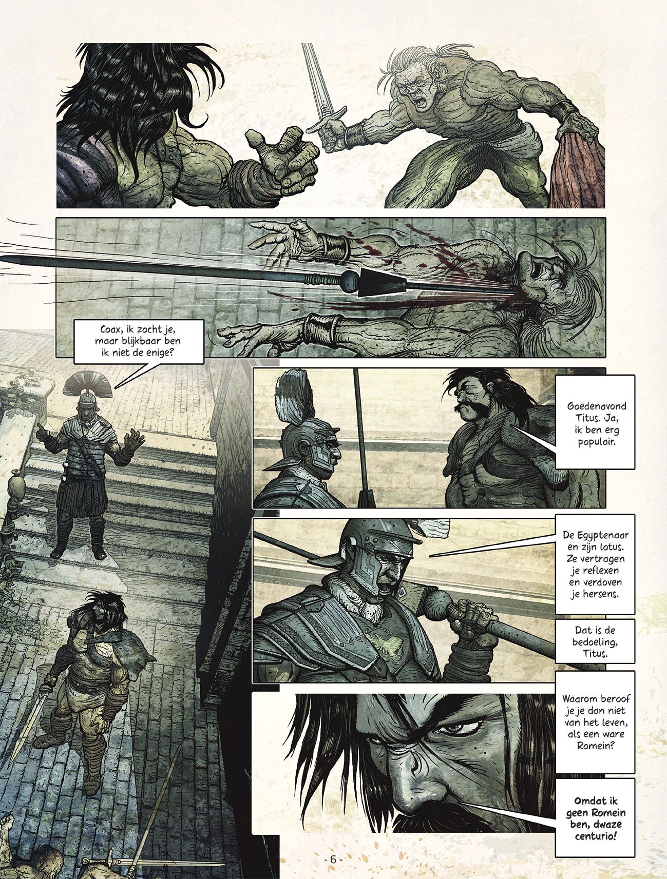 - De spion van Caesar is een brok spieren, een Gallische Conan die voor niets terugdeinst om wraak te nemen op de moordenaars van zijn vrouw en zoon - Tweede deel in deze reeks van Jean-Pierre Pécau (Jeremiah Johnson, Frontlinies) met tekeningen van Fafner (Man van het jaar-14) Rome heeft honger. De graantoevoer naar de stad is al maanden opgedroogd. Maar waarom? Is het een complot, een nieuwe streek van de piraten of een list van Cleopatra in Egypte? Om dat te achterhalen beveelt Caesar, die zijn handen vol heeft met de verovering van Gallië, zijn Gallische spion Coax om op onderzoek te gaan. Bezeten door zijn verlangen naar wraak vertrekt die laatste naar Rome, waar hij kennismaakt met de duistere kanten van de politiek en de strijd aangaat met een oude vijand. Als een generaal zijn triomf in Rome vierde, wilde de Romeinse traditie dat er een slaaf achter hem stond en hem influisterde: ‘Vergeet niet dat je sterfelijk bent’ (Memento mori). Bij de triomftocht van Caesar was het geen slaaf die achter hem stond, maar zijn spion. De spion van Caesar.