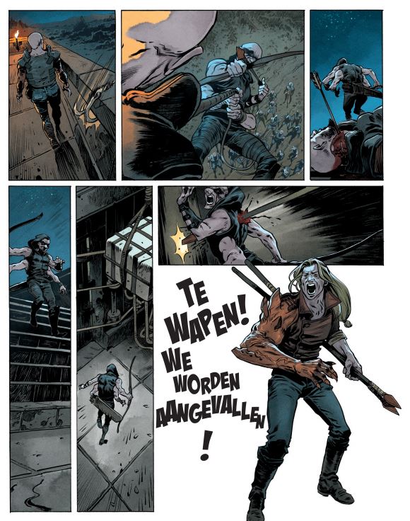 Score moyen 5 / 5Wreed goed Eerst was er de roest. Alle metaal verpulverde langzaam. Al snel stond de wereld stil en werden we terug gekatapulteerd naar het stenen tijdperk. Niet erg, denk je dan, want onze eigen bekende geschiedenis zouden we wel weer opnieuw kunnen opbouwen. Niets van. Dan tastte de roest de mensen aan. Bijna iedereen muteerde in halve of hele monsters. Sommigen kregen krachten die voorheen onmogelijk waren. Anderen werden nietige, wanstaltige wezens. Maar allen zijn op zoek naar zij die de opperkracht hebben, en dat is normale baby’s kunnen verwekken of ze te baren. Want enkel zij kunnen de mensheid behoeden van uitsterving. De jacht op gezonde mensen, het nieuwe goud, is open. Eén man voelt zich kiplekker in deze post-apocalyptische wereld: de Drager. Hij heeft slechts één missie in zijn leven. Je vraagt hem iets en hij voert het uit. Altijd. Zijn prijs is bizar. Hij vraagt je enkel om een soort blauw ei in te slikken. Dat is alles. Voor één keer besloten we om niets te verklappen van de inhoud van het tweede deel. Dat heeft immers geen enkele zin. Scenarist Tristan Roulot (Hedge Fund, Irons,...) schiep immers een wereld waar je vanaf het begin mee moet zijn. En die wereld is absoluut de moeite. Eenmaal mee kom je terecht in een strip die balanceert tussen Sneeuw, Thorgal en Jeremiah. Bizar, mystiek en excessief gewelddadig. Bovendien is dit schitterend in beeld gebracht door Dimitri Armand. Zijn tekeningen zijn woest, op het randje van agressief, maar terzelfdertijd heel leesbaar. Via de excentrieke Drager wordt je echt opgeslorpt in deze vreemde, nieuwe wereld. Dit is wreed goed. Één ding begrijpen we echt niet. In hun voorwoord bedanken zowel Roulot als Armand uitgebreid de boekhandelaars, de journalisten en vooral de lezers die zwaar geloven in hun werk. Hebben ze maar een contract gekregen voor één deel? Of hoogstens voor een drieluik? Dit zou kunnen verklaren waarom ze al in dit tweede deel het geheim van de Drager onthullen. Bovendien kozen ze ervoor om een rechtlijnig verhaal te vertellen in plaats van langzaam wat vrij te geven via de gekende meanderende verhaaltechnieken. Voor ons hoefde die ontsluiering echt nog niet. Maar iets anders is wel zeker: van de Drager zijn we nog lang niet af. Wat een finale! De Drager is een reeks die alles heeft om uit te groeien tot een topper. Een straffe pitch, een knap scenario een een heel straffe tekenaar. Hopelijk kunnen en mogen de auteurs geduldig doorgroeien. WOUTER PORTEMAN stripspeciaalzaak
