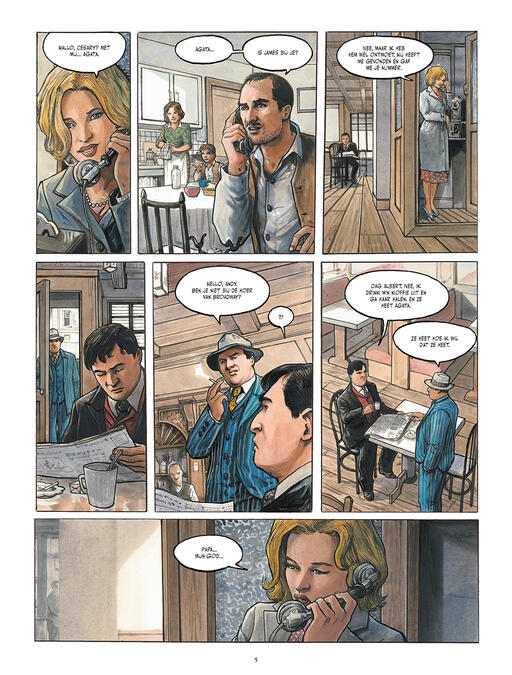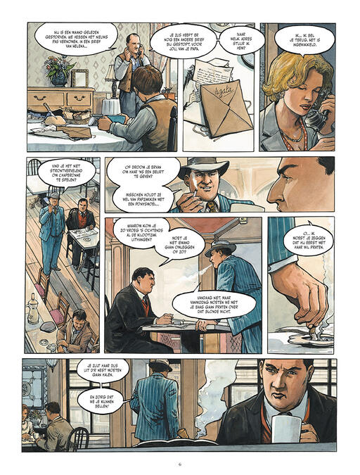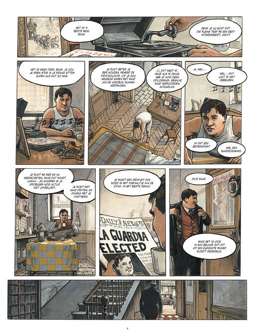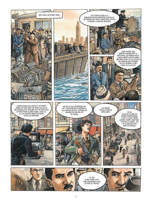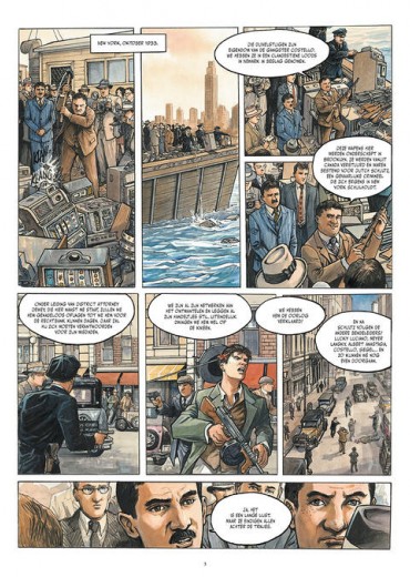 Score moyen 5 / 5Tommy gun van schouder gewisseld Begin jaren 1930 hebben verschillende maffiafamilies New York stevig onder controle. Dat omvat allerlei domeinen en alle lagen van de bevolking. De maatschappij is er zo van doordrongen dat steeds duidelijker wordt hoe het de samenleving kan ontwrichten. Overheden zijn die onzekerheden beu. Ze schakelen openbare aanklagers, zogenaamde district attorneys, in die als taak hebben de criminele organisaties zoveel mogelijk schade toe te brengen of zelfs te ontmantelen. Sommigen onder hen lijken zo onkreukbaar en vinden zo’n nieuwe vervolgings- en onderzoeksmethode uit dat de misdaadfamilies het effectief warm krijgen onder de voeten. Het is een teken aan de wand dat ze voorzichtiger beginnen worden en dat er een interne strijd losbarst over de te volgen methodes daarbij. Agata krijgt zelfs de mogelijkheid zich vrijer te bewegen als ze zich aan bepaalde voorwaarden houdt die de dons haar hebben gesteld. Dat er mogelijk details zouden uitkomen over haar ontvoering, waarbij ook een kind betrokken was, maakt de maffiosi zenuwachtig en daar zou Agata van kunnen profiteren, als ze uiterst voorzichtig is. Agata is nog steeds het hoofdpersonage van dit drieluik, maar meer dan bij de vorige twee delen is ze in dit slotdeel a means to an end. Auteur Olivier Berlion gebruikt haar personage dit keer meer als kapstok waaraan hij het verhaal van de strijd tegen de maffia kan ophangen, inclusief de interne strubbelingen. Die aanpak werkt. Berlion slaagt erin om duidelijk te tonen hoe de georganiseerde misdaad het maatschappelijke leven in New York in zijn greep houdt. Tegelijk is ook duidelijk te zien hoe de kopstukken nieuwe manieren moeten verzinnen om uit de handen van het gerecht te blijven. Zij die slim zijn, beseffen dat de tijden veranderd zijn en dat de directe confrontatie aangaan met zij die hen vervolgen niet langer wijselijk of zelfs mogelijk is. De methode is nu om niet langer gelinkt te worden aan de gepleegde misdaden. Daarom is het voor hen zo belangrijk om eerdere getuigen in de hand te houden. Berlion schetst net zo’n verhaal waarin Agata zich daarom rustig houdt. Zo verschuift de focus van haar naar de maffiatop. De verhaalspanning rond het leven van Agata vermindert, maar de beeldvorming rond het wereldje is des te sterker, waardoor dat niet deert. Grafisch is de beeldvorming even indrukwekkend als in de voorgaande delen. Karakteristieke wolkenkrabbers, verpauperd platteland en smetteloze Italiaanse maatpakken die even schoon zijn als hun eigenaars verdorven, dit drieluik bezit grafisch alle elementen van een sterk maffiaepos. Sommige prenten lijken eerder statisch, maar passen goed bij de opgebouwde sfeer en prima bij de stemmige aquarellen in deze albums. Alweer is een mooi drieluik afgerond. bron ssz