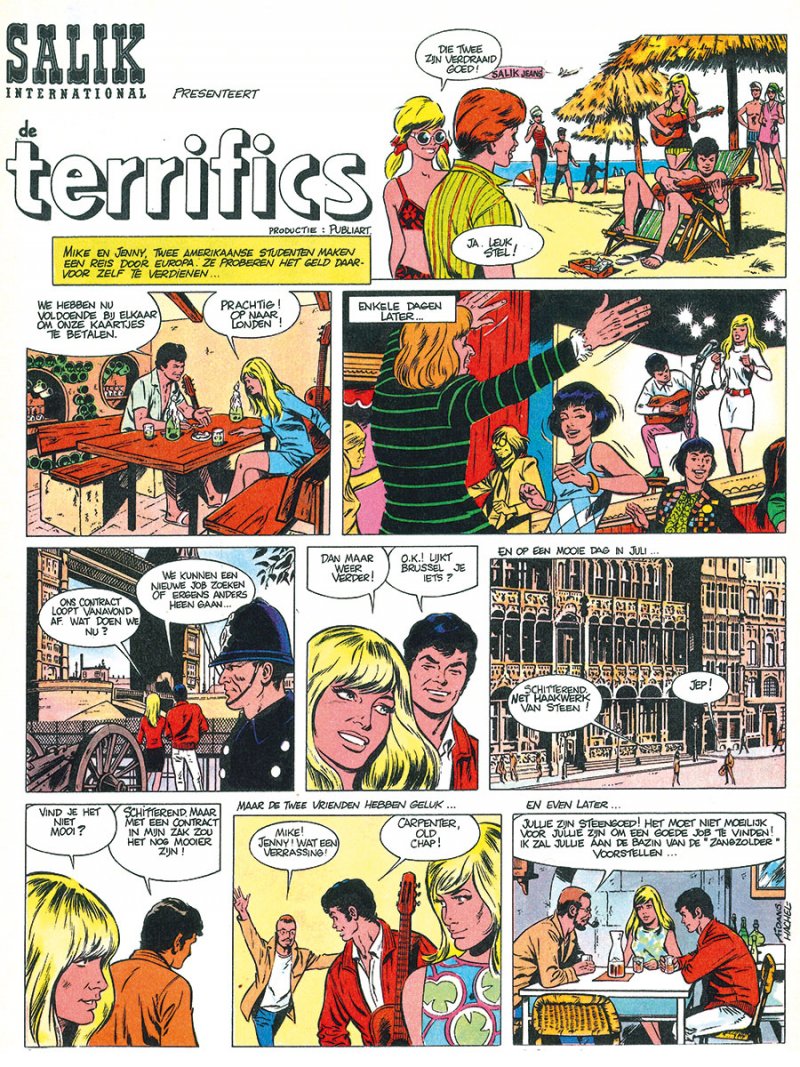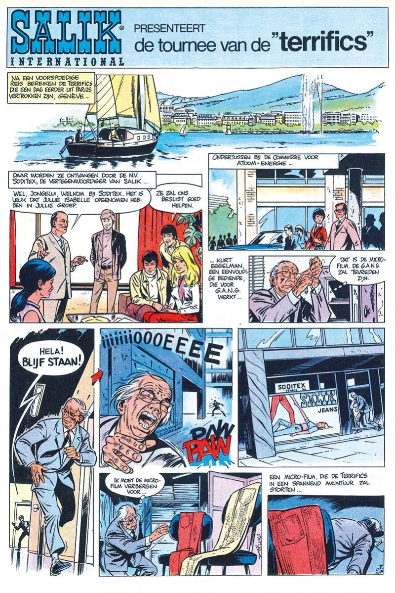 In 1969 vertelde Aidans de beproevingen van een popmuziekgroep, “De Terrifics”, in twee korte verhalen gepubliceerd in Kuifje (Promotie voor het jeansmerk Salik) softcover albums van 16 pagina's, 300 genummerde exemplaren