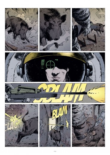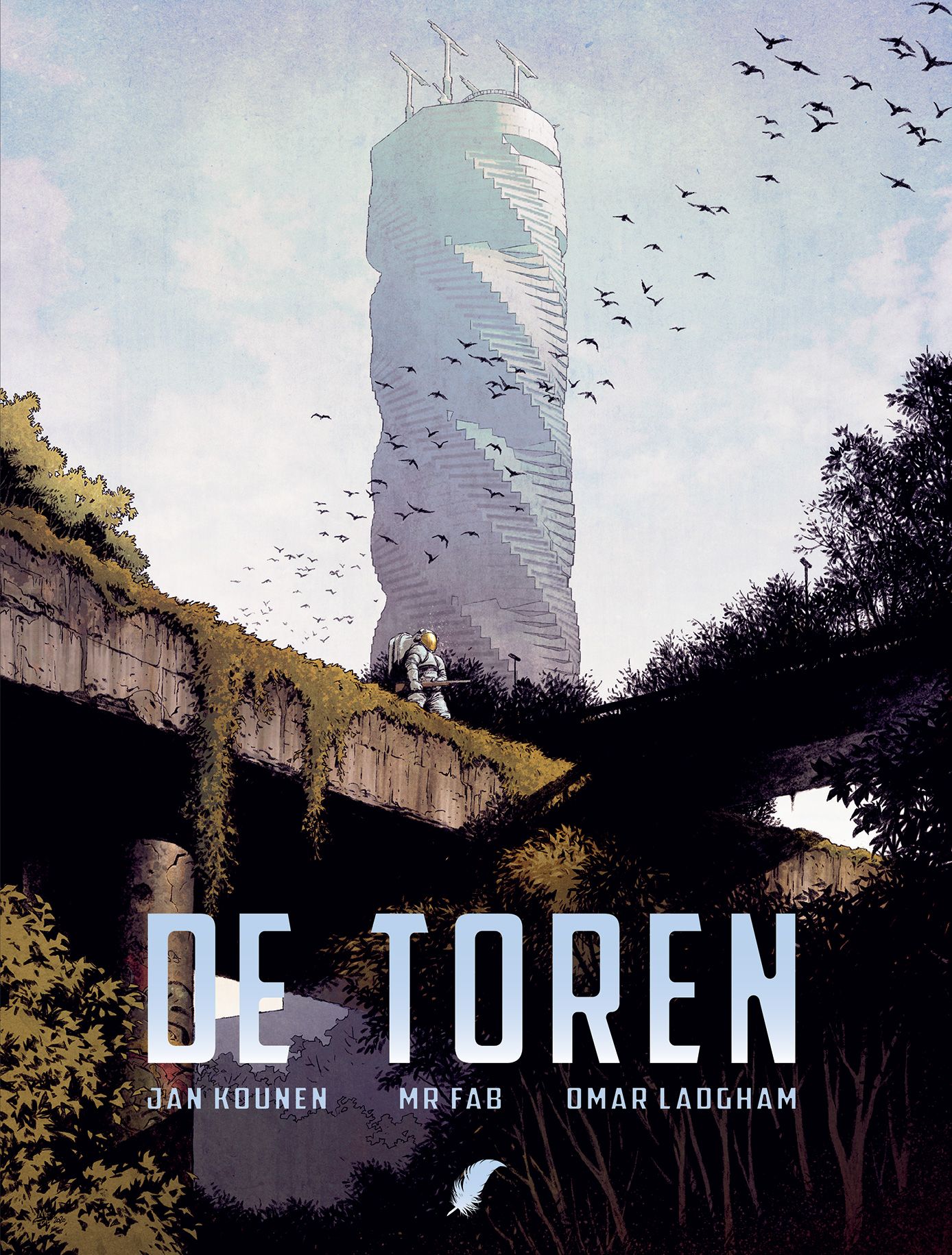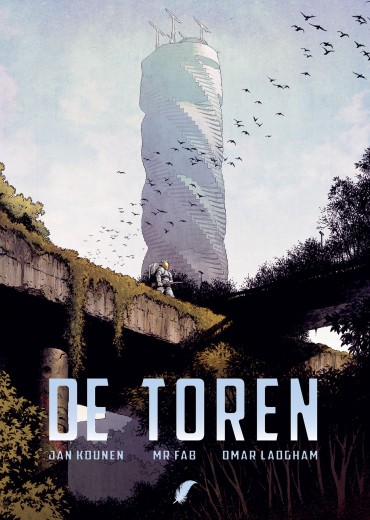 Score moyen 3 / 5Brussel, 2072. Een dodelijke bacterie heeft dik dertig jaar geleden lelijk huis gehouden. Alle mensen zijn gestorven. Enkel een kleine drieduizend mensen hebben zich verschanst in een grote, afgesloten toren die gestuurd, bestuurd en gecontroleerd worden door de Artificiële Intelligence computer Newton. In deze Newtown kunnen de mensen overleven. Alleen begint de toren steeds meer gebreken te vertonen. Het zelfvoorzienende gebouw is tot op de draad versleten en Newton heeft de voorbije dertig jaar wel heel veel bijgeleerd over de menselijke psyche. Leve AI! In deze moderne gevangenis zijn de enigen die buiten kunnen een handvol jagers. In hun beschermende pakken kunnen ze een uurtje jagen op reeën en everzwijnen die in de door de natuur heroverde hoofdstad wel kunnen overleven. Het kleinste scheurtje in hun beschermende pakken betekent een onmiddellijke, pijnlijke dood. De bacterie heerst nog steeds. Ook in de toren is niet alles peis en vree. De intra’s, jongeren die geboren zijn in de toren, maken steeds meer amok. Zij pikken het niet dat ze door hun egoïstische ouders veroordeeld zijn om hun leven te leiden in gevangenschap. Maar er is geen andere optie. Isolement, generatieconflicten, technologische aftakeling en dictatuur. De Toren heeft alles om de beste post-apocalyptische thriller te worden die je ooit hebt gelezen. Zover zijn we nog niet. Dit eerste deel beperkt zich tot het uitgebreid voorstellen van alle personages en het in beeld brengen van de situatie met de mogelijke risico’s en uitdagingen. Computer Newton, die zich als een ectoplasma door het gebouw beweegt, zorgt voor de rode draad en is het bindmiddel in dit inleidende hoofdstuk. Dit is echt wel een heel boeiende setting die de scenaristen Omar Ladgham en de Nederlandse filmregisseur Jan Kounen (die de Blueberry-film inblikte) hebben uitgedokterd. Ze bouwen het verhaal ook helemaal op zoals een film. Budgettaire redenen zijn de oorzaak dat dit geen serie of film is geworden, maar een strip. We kunnen er alleen maar wel bij varen. Maar zover zijn we dus nog niet. De toon die de scenaristen aanhouden, is die van een filmserie voor een heel groot publiek. Voor ons mocht die wat cynischer, harder en vooral stressvoller, een beetje zoals in de stripklassieker De IJstrein. Ook misten we het echte begin van het verhaal. Dit was net te veel introductie. Tekenaar Mr Fab (Uur U, Man van het jaar) is een adept van de Christophe Bec-stijl. De openingsscène met een jacht door het overwoekerde Brussel zette ons gelijk op het puntje van onze stoel. Dit was machtig gedaan. Links en rechts herkende je wat stukjes van een onze hoofdstad — een oude striptekening van Het Gele Teken was de mooiste referentie. Maar toen we de personages zonder helm te zien kregen, kreeg ons enthousiasme een knauw. Hier was nog werk aan. Ook de beklemmende atmosfeer in de toren mocht wat scherper gesteld worden. De Toren heeft een machtig uitgangspunt. Alleen vertaalt zich dit in dit aanloopdeel nog niet in een even machtig waw-gevoel. Dit heeft alles om te scoren, maar voorlopig is het een dubbeltje op zijn kant. (bron ssz)