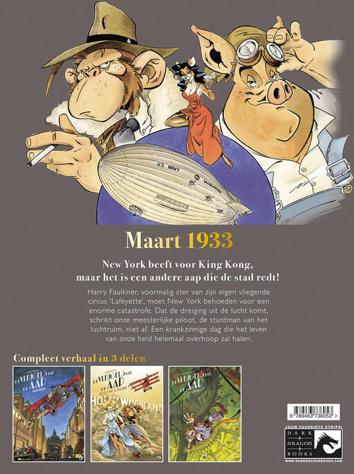 herziene editie Collectorp pack van 3 softcovers compeet verhaal . bestaat ook in PROMOPAKKET + 3 softcover voor en een compleet verhaal voor slechts 23,95 euro en dit ipv 30 euro!!!! beperkte voorraad Chicago, 1933 ... De Universal Exhibition wordt gehouden in de stad van criminaliteit en allerlei soorten mensenhandel ... alcohol bijvoorbeeld. Geen gebied waarin Harry zou kunnen duiken ... nou, tenzij de behoefte aan geld wordt gevoeld. Tussen Howard Hughes en Al Capone zullen de zaken van Harry Faulkner ingewikkeld worden. En dat is niet te vergeten deze mysterieuze moordenaar die de huid van onze stuntaap wil ...