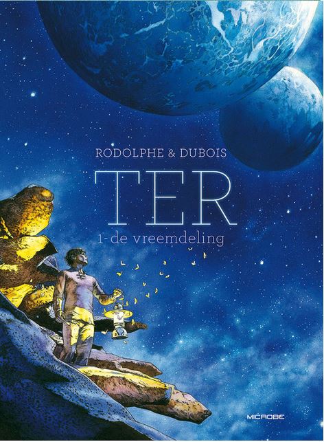 Maak kennis met de blauwe TER hemel en zijn kleurrijke personages in deze reeks die uit drie delen zal bestaan en komen nog dit jaar uit. Zal verschijnen in softcover, gelimiteerde hardcover én Luxe ( 99 ex). Het grafische gedeelte is toevertrouwd aan Christophe Dubois (De Ballade van Magdalena, Saga uitgaven) INHOUD: Een man komt uit het niets, vanuit een begraafplaats in een vijandige, onbewoonde woestijn, waar leven onmogelijk is. Hij wordt ontdekt door Pip, een jonge bedrieglijke, ernstige dief die hem in zijn slaap terugvindt in een grafkelder. Hij is naakt en spreekt niet. Het enige onderscheidende kenmerk: een tatoeage die een hand voorstelt, die hem de bijnaam “Gouden Hand' opleverde. Pip neemt hem mee naar Bas Courtil, een primitief stadje dat zich vastklampt aan een rotsachtige heuvel. Beetje bij beetje leert hij spreken en blijkt hij intelligent te zijn, want niettegenstaande zijn geheugen nog steeds ontbreekt, is hij ongelooflijk goed in het repareren van alle soorten mecanische toestellen en kan zelf de duizend en één toestellen doen herstarten die Pip reeds verzamelde… Hij wint al snel de sympathie van de ene kant van de bevolking maar ook de afgunst van de andere kant…. Rodolphe creëert een schilderachtige omgeving, een mozaïek van mysterie, poëzie, humor en exotische avonturen. De zoektocht naar de identiteit is het thema van deze strip. Het geheugenverlies van de held laat twijfels over zijn bedoelingen, maar ondanks de weinige informatie is hij relatief vertederend. Het grafische gedeelte is toevertrouwd aan Christophe Dubois (De Ballade van Magdalena, Saga uitgaven)
