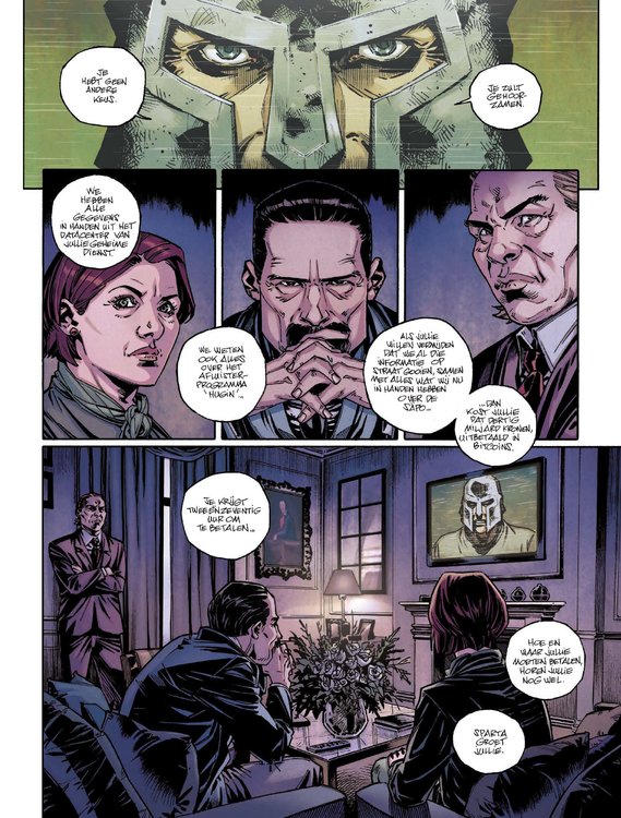 Mikael Blomkvist en Lisbeth Salander zitten de kidnappers van Plague, Trinity en Bob the Dog op de hielen. De 'white power'-extremisten van Sparta willen de servers van de Zweedse inlichtingendienst kraken. Als de drie hackers hen daarbij niet helpen, wacht hen een gewisse dood. Alles wijst in de richting van Mark Borrow, auteur van een bestseller over de superioriteit van de man en politiek actief in de radicale extreemrechtse beweging. Tijdens een van zijn workshops gijzelen Mikael en Lisbeth hem om te weten te komen waar zijn kompanen de hackers vasthouden. De situatie loopt uit de hand tot Lisbeth en Mikael onverhoopt de hulp krijgen van een oude kennis ... Laatste album van dit drieluik: de spannende ontknoping. Verschijnt alleen in stripvorm en staat helemaal los van de boeken van David Lagercrantz. Een thriller die meer dan eens refereert aan WikiLeaks. Scenario van de in Zweden wonende Sylvain Runberg en tekeningen van de Spaanse Belén Ortega.